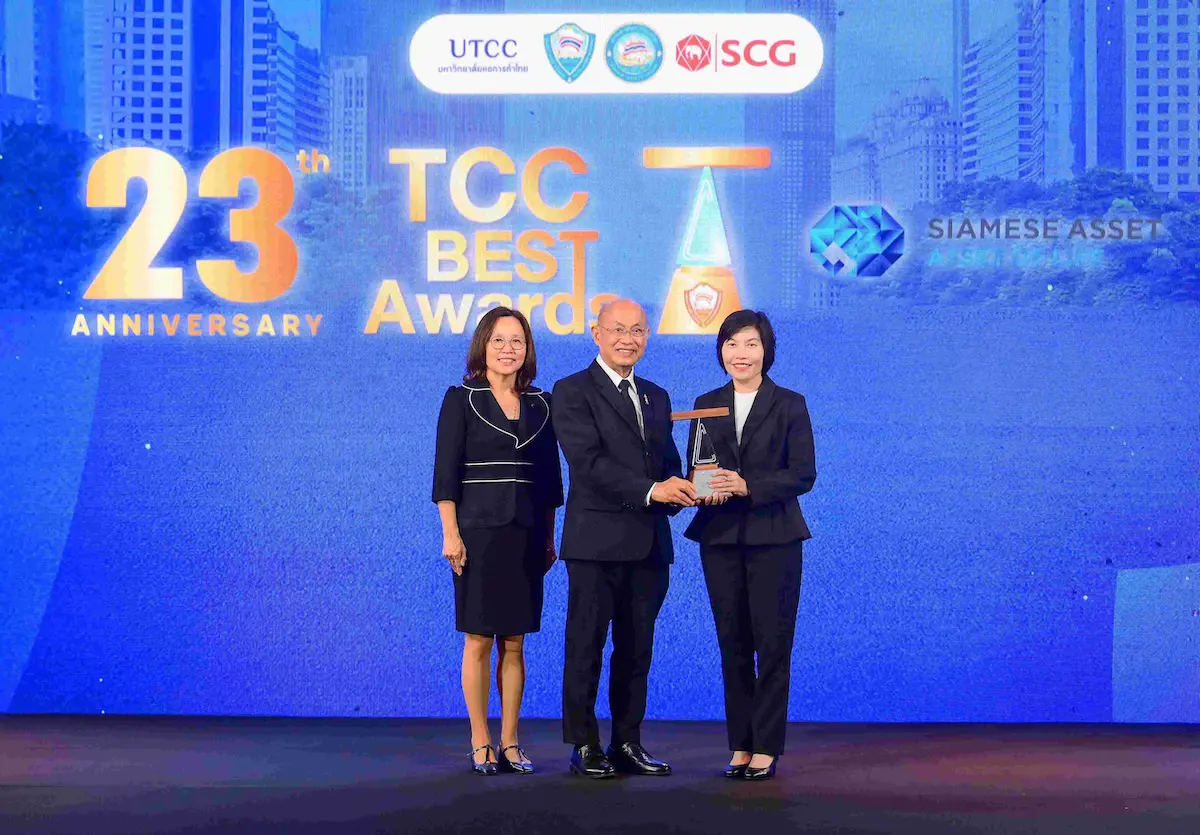 ศาสตราจารย์เกียรติคุณ นายแพทย์เกษม วัฒนชัย (กลาง) องคมนตรี ในฐานะประธานในพิธี มอบรางวัลประกาศเกียรติคุณจรรยาบรรณดีเด่น หอการค้าไทย (TCC Best Award) ประจำปี 2568 ให้แก่บริษัท ไซมิส แอสเสท จำกัด (มหาชน) (SA) ในงาน “Big Quick Win ด้วยหลักจรรยาบรรณ” จัดโดยหอการค้าไทย โดยมีคุณสุนันทา สิ่งสรรเสริญ (ขวา) ประธานเจ้าหน้าที่บริหารร่วม SA เป็นผู้แทนรับมอบรางวัล พร้อมด้วยคุณวีนัส อัศวสิทธิถาวร (ซ้าย) ประธานคณะกรรมการส่งเสริมจรรยาบรรณ หอการค้าไทย ร่วมแสดงความยินดี โดยรางวัลดังกล่าวจัดขึ้นเพื่อเชิดชูองค์กรธุรกิจที่ดำเนินงานด้วยความซื่อสัตย์ โปร่งใส และยึดมั่นในหลักธรรมาภิบาลอย่างต่อเนื่อง การที่บริษัทฯ ได้รับรางวัลในครั้งนี้จึงสะท้อนถึงความมุ่งมั่นในการบริหารจัดการธุรกิจด้วยหลักจริยธรรมและการกำกับดูแลกิจการที่ดี ควบคู่กับการดำเนินงานตามแนวทาง ESG เพื่อขับเคลื่อนองค์กรสู่การเติบโตอย่างมั่นคงและยั่งยืน โดยพิธีมอบรางวัลจัดขึ้น ณ มหาวิทยาลัยหอการค้าไทย เมื่อเร็วๆ นี้