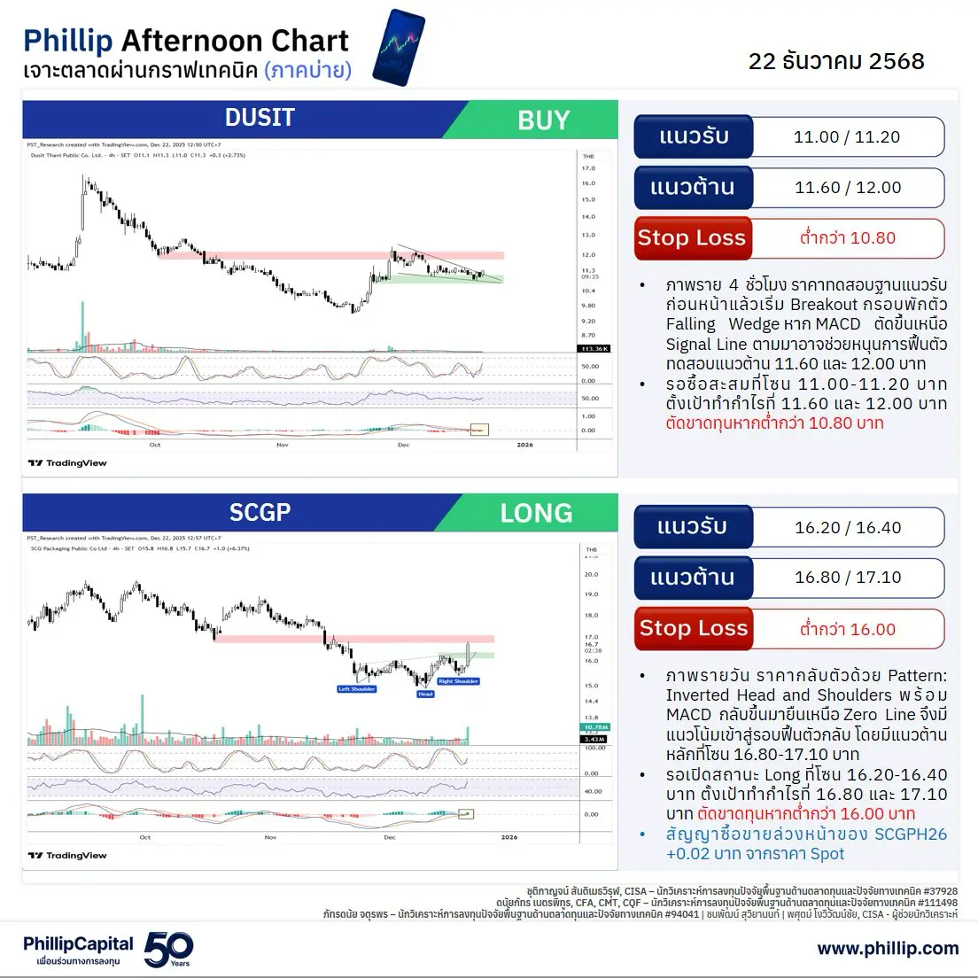 หุ้นแนะนำบ่ายนี้ DUSIT, SCGP (Long)