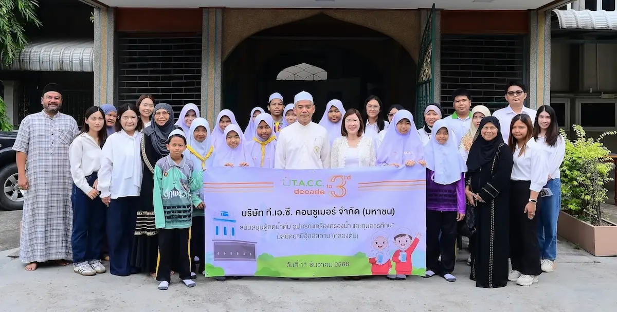 คุณสุวีรยา อังศวานนท์ ผู้อำนวยการฝ่ายกิจการองค์กรและนักลงทุนสัมพันธ์/คู่ค้าหลัก พร้อมด้วยตัวแทนพนักงาน บริษัท ที.เอ.ซี. คอนซูเมอร์ จำกัด (มหาชน) หรือ TACC ได้จัดกิจกรรมเพื่อสังคม (CSR) ในการดูแลพื้นที่บริเวณโดยรอบของสำนักงานใหญ่ ในโอกาสนี้ได้มอบตู้กดน้ำดื่ม อุปกรณ์เครื่องกรองน้ำ ทุนการศึกษา รวมถึงสินค้าคาแรคเตอร์ และเครื่องดื่มตรา Triva ให้กับมัสยิดยามิอุ้ลอิสลาม (คลองตัน) กรุงเทพฯ โดยมุ่งส่งเสริมสวัสดิการ คุณภาพชีวิต และการศึกษาของเยาวชนในชุมชน ซึ่งกิจกรรมดังกล่าวจัดขึ้นเมื่อเร็วๆ นี้