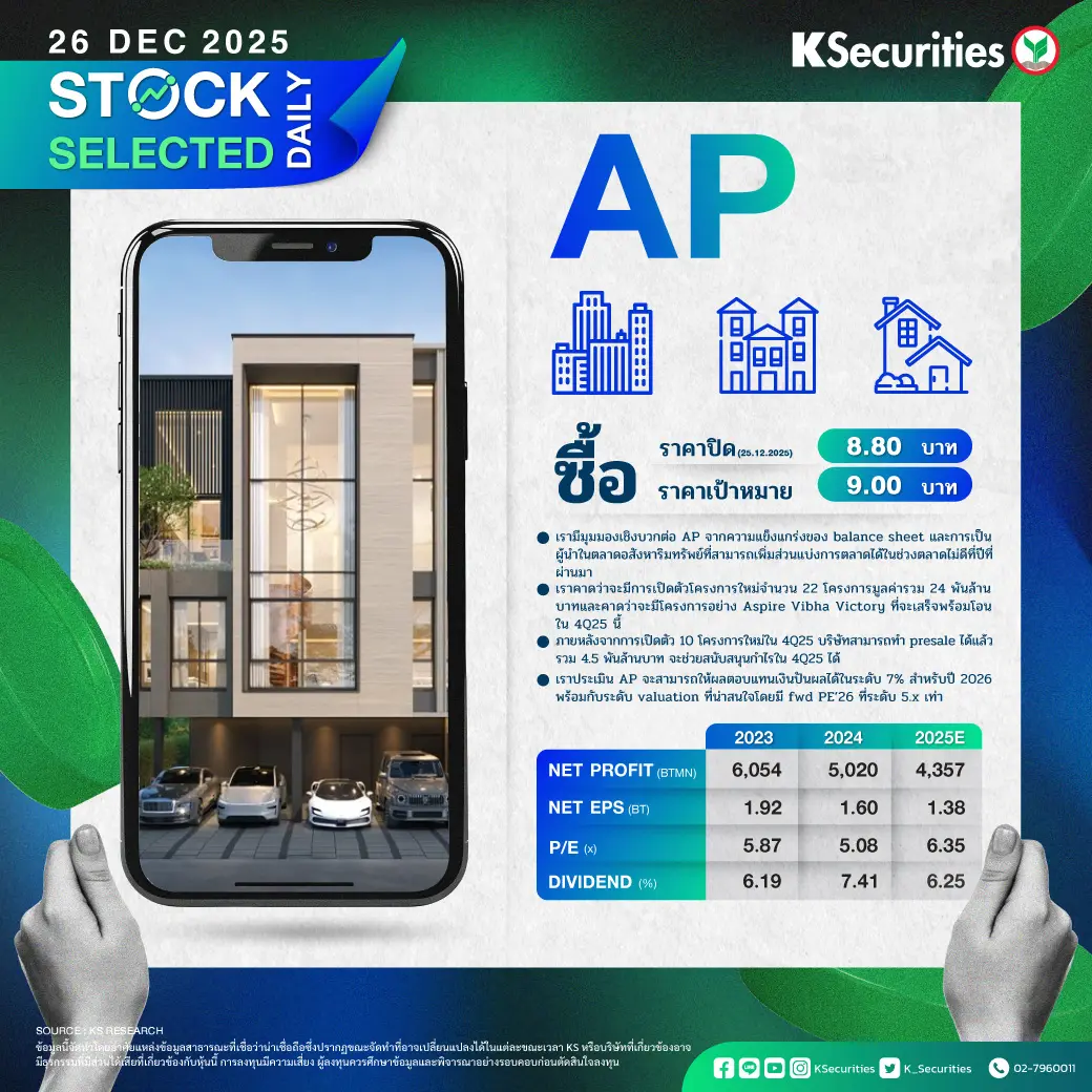 AP: ผู้นำในตลาดอสังหาริมทรัพย์ คาดปันผลได้ในระดับ 7% สำหรับปี 2026