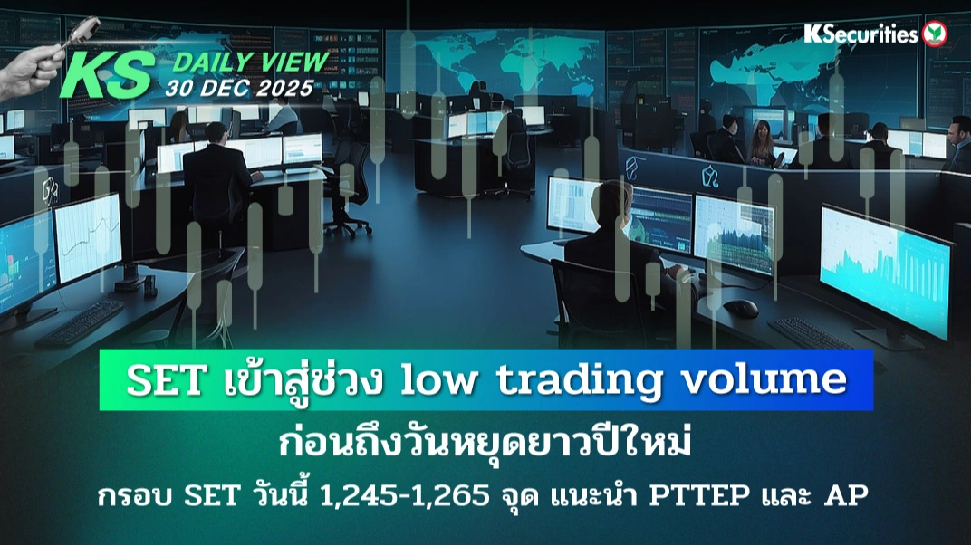 KS Daily View 30.12.2025 >>> SET เข้าสู่ช่วง low trading volume ก่อนถึงวันหยุดยาวปีใหม่ กรอบ SET วันนี้ 1,245-1,265 จุด แนะนำ PTTEP และ AP