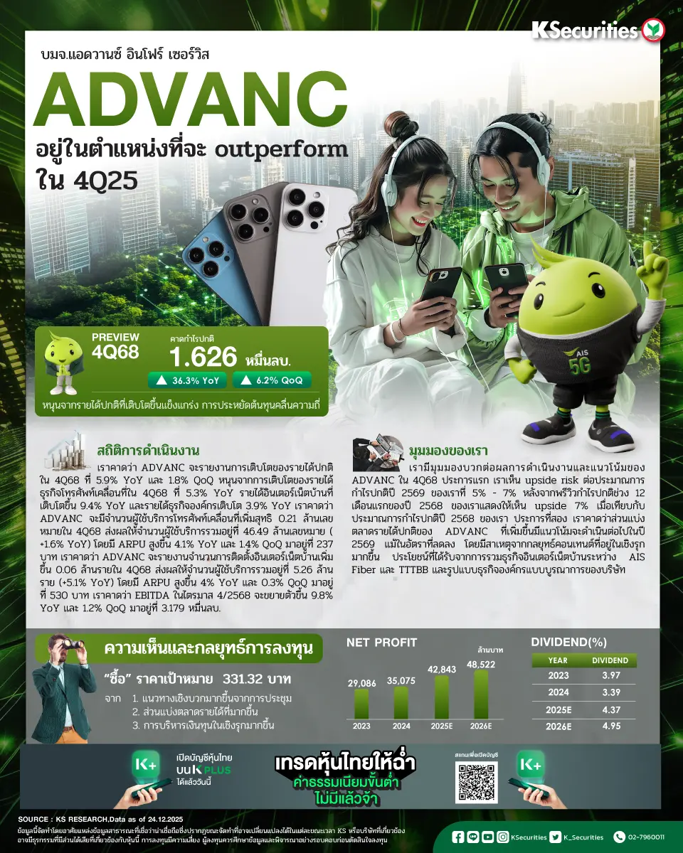 ADVANC อยู่ในตำแหน่งที่จะ outperform ใน 4Q25
