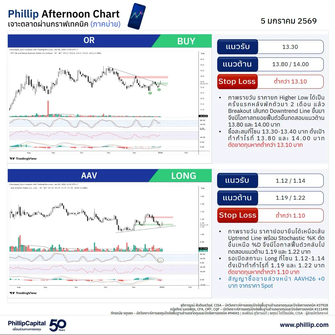 หุ้นแนะนำบ่ายนี้ OR, AAV (Long)