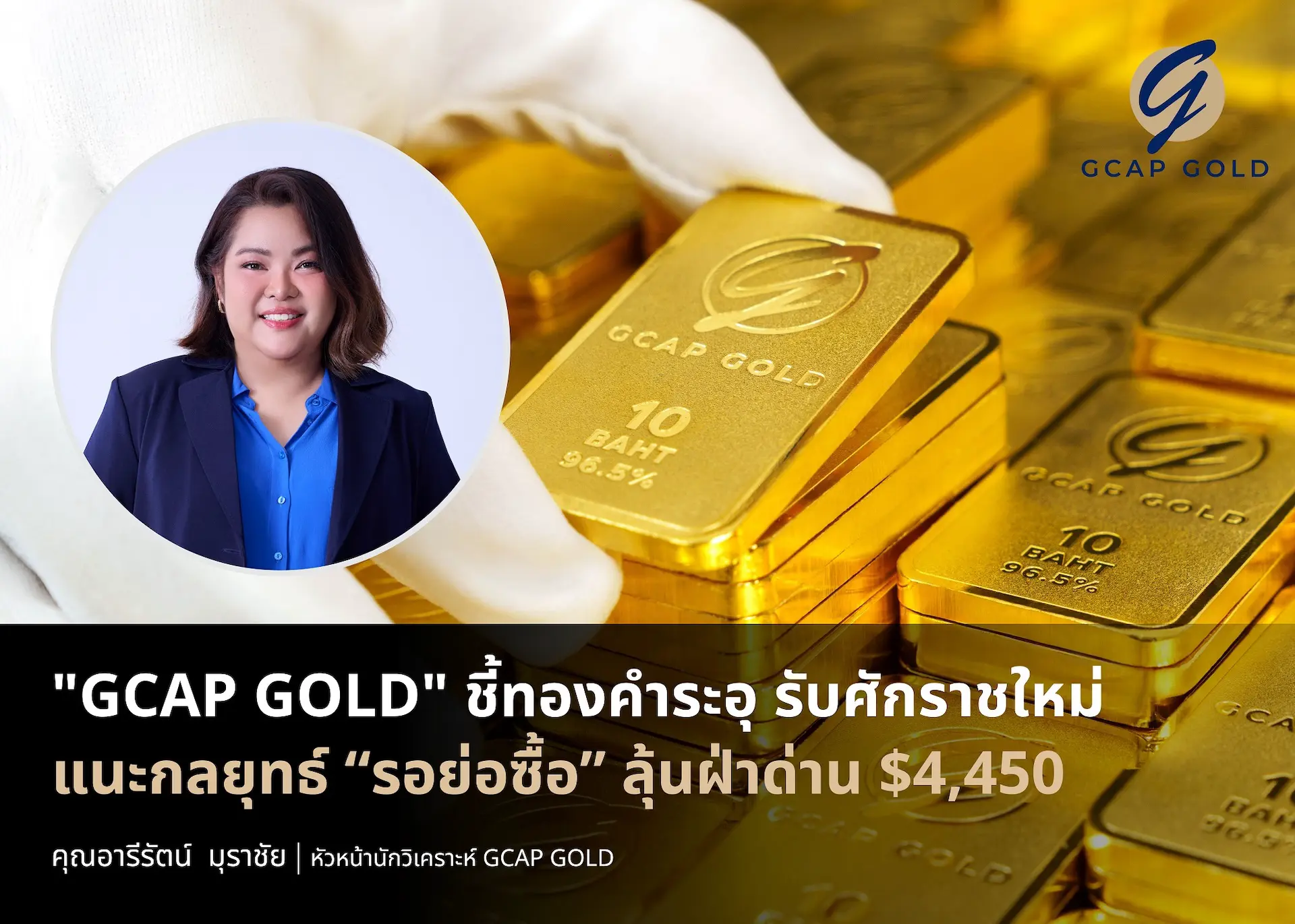 บริษัท จีแคป จำกัด หรือ GCAP GOLD เปิดรับศักราชใหม่ระอุ ชี้ทองคำเข้าสู่ช่วงวัดใจ แนะกลยุทธ์ “รอย่อซื้อ” รับปัจจัยบวกภูมิรัฐศาสตร์ หลังสหรัฐฯ บุกเวเนซุเอลา และเกาหลีเหนือทดสอบจรวด จับตาแนวรับสำคัญ $4,300