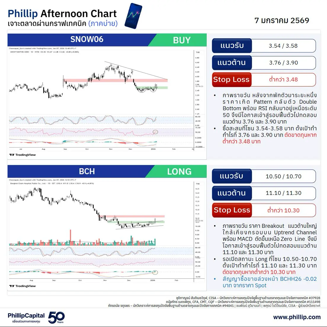 หุ้นแนะนำบ่ายนี้ SNOW06, BCH (Long)