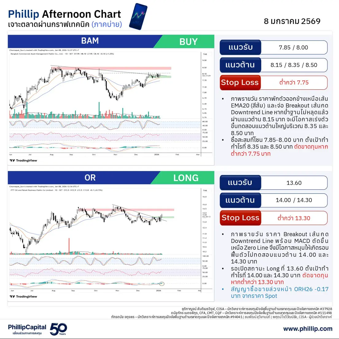 หุ้นแนะนำบ่ายนี้ BAM, OR (Long)