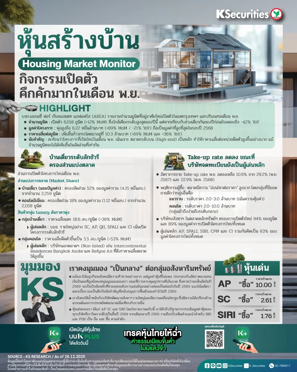 หุ้นสร้างบ้าน กิจกรรมเปิดตัวคึกคักมากในเดือน พ.ย.
