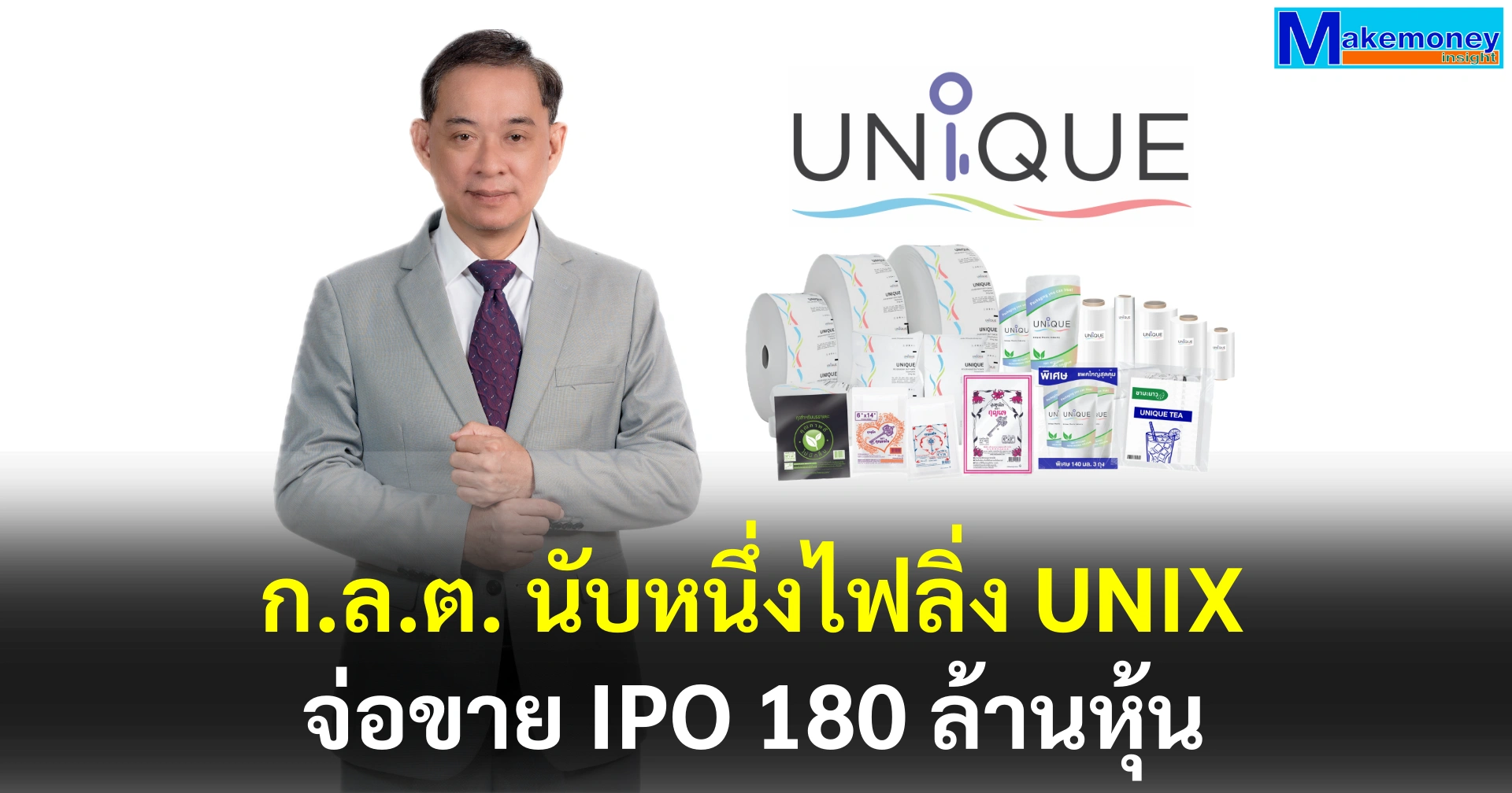ก.ล.ต.นับหนึ่งไฟลิ่ง บมจ.ยูนิคพลาสติก อินดัสตรี (UNIX) ผู้ผลิตและจำหน่ายฟิล์มและบรรจุภัณฑ์พลาสติก ประกอบด้วย ฟิล์มสำหรับผลิตบรรจุภัณฑ์ชนิดอ่อน ฟิล์มและบรรจุภัณฑ์สำหรับบรรจุของหนัก ฟิล์มและบรรจุภัณฑ์สำหรับอุตสาหกรรมทั่วไป และบรรจุภัณฑ์สำหรับสินค้าอุปโภคบริโภค เตรียมขาย IPO จำนวน 180 ล้านหุ้น คิดเป็น 27.27 % เข้าจดทะเบียนในตลาดหลักทรัพย์แห่งประเทศไทย (SET) ปี 2569 หวังนำเงินเพื่อใช้ลงทุนในเครื่องจักรและอุปกรณ์ รวมถึงธุรกิจเกี่ยวเนื่องที่มีศักยภาพ เพื่อรองรับการเติบโตอย่างแข็งแกร่งและยั่งยืนในอนาคต
