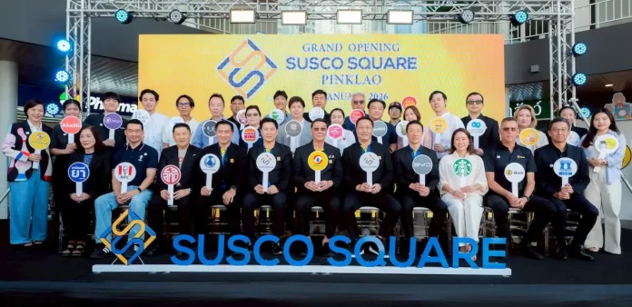 นายมงคล สิมะโรจน์ ประธานกรรมการ (กลาง), นายภิมุข สิมะโรจน์ รองประธานกรรมการ (ที่ 2 จากซ้าย), นายชัยฤทธิ์ สิมะโรจน์ ประธานกรรมการบริหารและกรรมการผู้จัดการ (ที่ 2 จากขวา) พร้อมคณะกรรมการบริหาร บริษัท ซัสโก้ จำกัด (มหาชน) (SUSCO) ถ่ายภาพร่วมกันในงานพิธีเปิดโครงการ “SUSCO SQUARE สาขาปิ่นเกล้า” แห่งที่ 4 ซึ่งคาดว่าจะช่วยสร้างรายได้เพิ่มขึ้นให้ทั้งทางตรงและทางอ้อม เนื่องจากตั้งอยู่บนทำเลศักยภาพสูง ใกล้แหล่งชุมชนและเป็นพื้นที่มีผู้คนสัญจรหนาแน่น โดยโครงการนี้ได้รวบรวมร้านอาหารและบริการจากแบรนด์ดังชั้นนำ อาทิ Lucky Suki, Burger King, KFC, Starbucks, Pharmax, B-Quik เป็นต้น สำหรับปี 2569 บริษัทฯ มีแผนหาพันธมิตรชั้นนำเพิ่มเติม ทั้งจากกลุ่มธุรกิจน้ำมัน และธุรกิจนอนออยล์ ควบคู่การเพิ่มสถานีบริการน้ำมัน เพื่อขยายฐานธุรกิจและลูกค้า พร้อมตั้งเป้าผลักดันรายได้รวมปีนี้เติบโต 8% และมุ่งสู่การเป็น “Smart Energy & Mobility Solutions Provider” อย่างเต็มรูปแบบ งานดังกล่าวจัดขึ้นเมื่อเร็วๆนี้