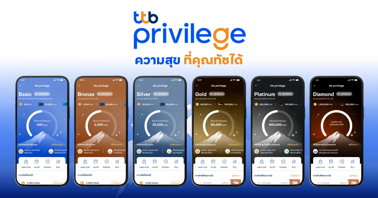 ทีทีบี ตอกย้ำความมุ่งมั่นในการสร้างชีวิตทางการเงินที่ดีขึ้นให้กับคนไทยอย่างแท้จริงในทุกมิติ ด้วยสุดยอด Loyalty Program “ttb privilege ความสุข ที่คุณทัชได้” ครั้งแรกในวงการธนาคารไทย กับการมอบสถานะสิทธิพิเศษให้กับลูกค้าธนาคารผ่านแอป ttb touch ราว 6 ล้านราย ตอบโจทย์ทั้งด้านการเงินและไลฟ์สไตล์ ยิ่งสถานะสูง สิทธิพิเศษยิ่งมาก เพื่อตอบแทนลูกค้าทุกกลุ่ม พร้อมเปิดโอกาสให้มีสิทธิ์เข้าร่วมภารกิจพิชิตรางวัลที่ออกแบบมาเฉพาะรายบุคคล เพื่อรับคะแนน WOW ไว้แลกแทนเงินสดหรือของรางวัลมากมาย