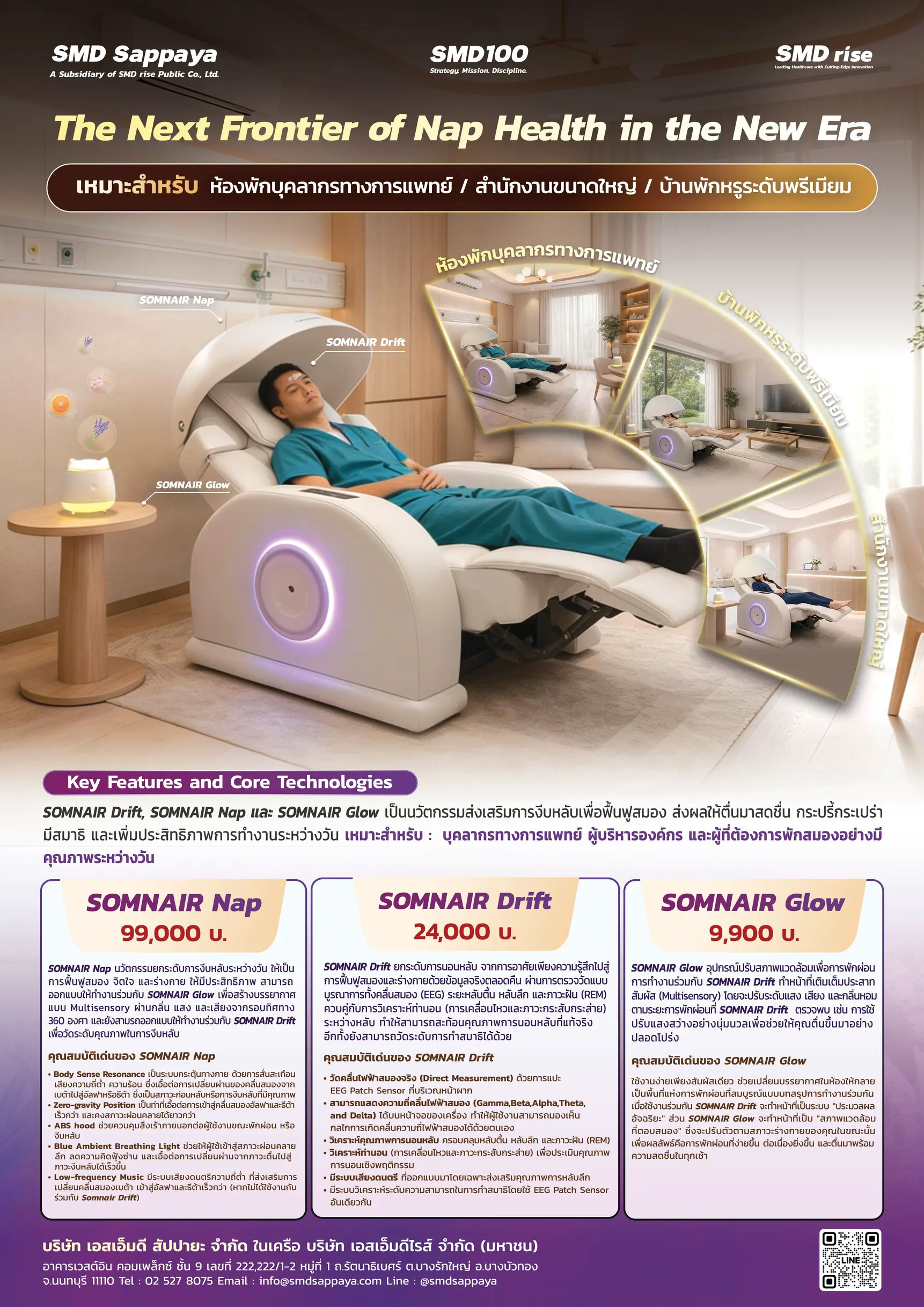 การเปิดตัว SOMNAIR สะท้อนบทบาทของ SMD100 ในการพัฒนา Health Infrastructure & Platform Company ที่ยกระดับ “การงีบหลับ” ให้เป็นกลไกสำคัญของการดูแลสุขภาพเชิงป้องกันในโลกการทำงานยุคใหม่ ภายใต้แนวคิด “The Next Frontier of Nap Health in the New Era”