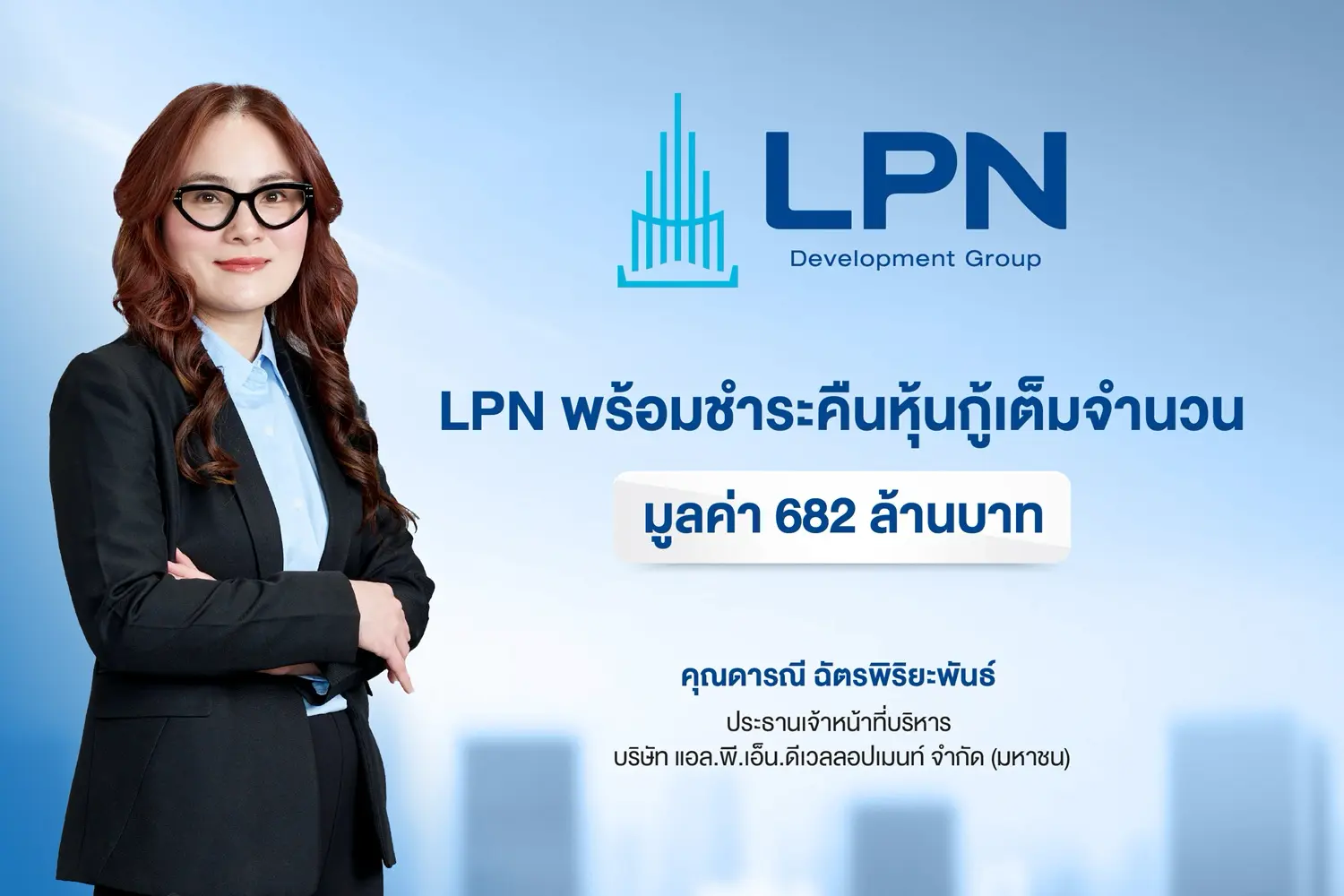 “LPN ให้ความสำคัญต่อความเชื่อมั่นของนักลงทุน จึงมุ่งเน้นการดำเนินธุรกิจด้วยวินัยทางการเงินที่เป็นระบบ ควบคู่ไปกับการบริหารจัดการอย่างรอบคอบและโปร่งใส ทำให้การออกหุ้นกู้แต่ละครั้งได้รับความไว้วางใจจากนักลงทุนมาโดยตลอด อีกทั้งยังสามารถชำระทั้งดอกเบี้ยและเงินต้นได้ตรงตามกำหนดทุกครั้ง โดยล่าสุด บริษัทพร้อมชำระคืนหุ้นกู้ที่จะครบกำหนดไถ่ถอนทั้งดอกเบี้ยและเงินต้นมูลค่ารวม 682 ล้านบาท อย่างครบถ้วนไว้เรียบร้อยแล้ว และเตรียมประกาศจ่ายคืนในวันที่ 26 มกราคม นอกจากนั้น ยังมีแผนจะออกหุ้นกู้ชุดใหม่ในเร็วๆ นี้” นางสาว ดารณี กล่าว