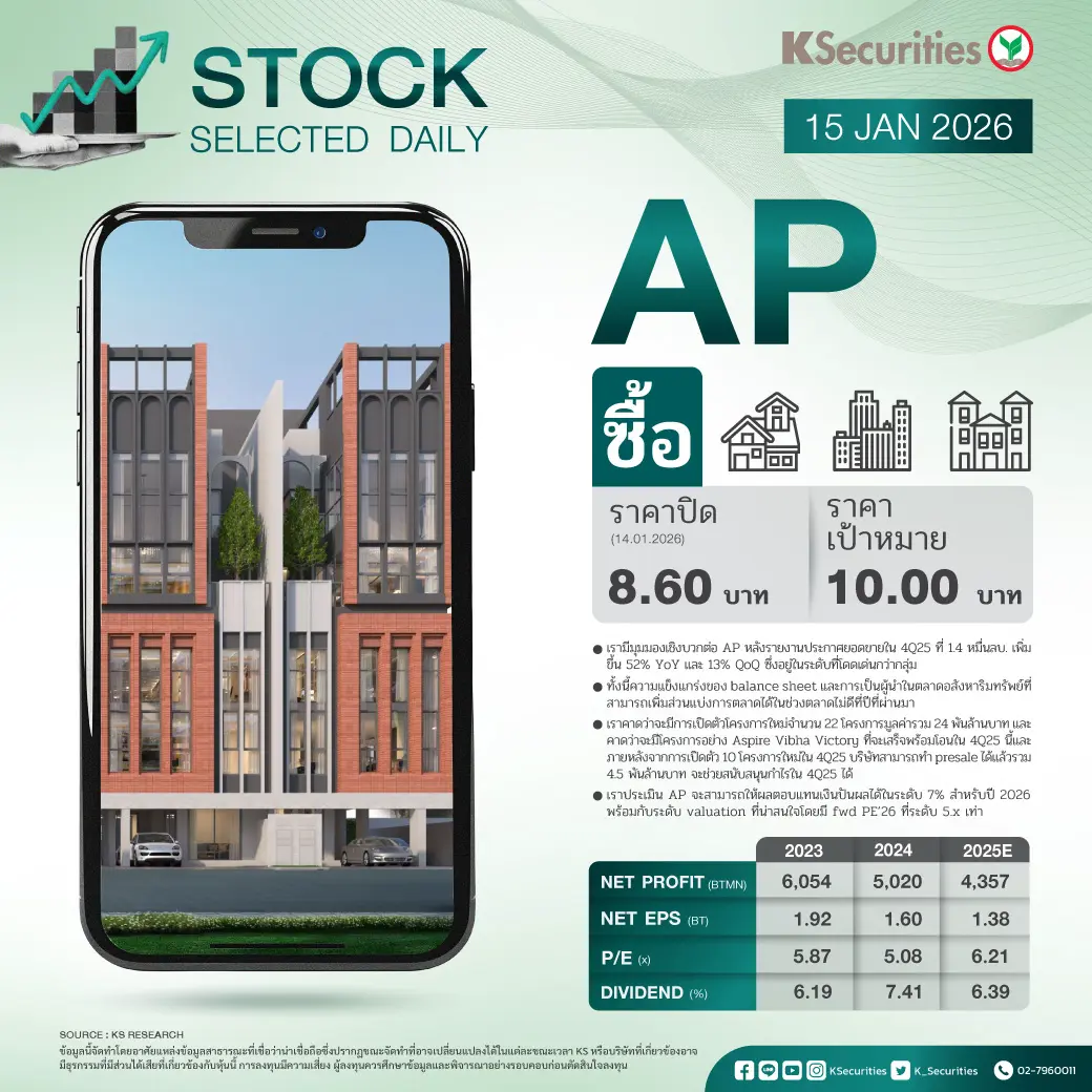 AP: ยอดขายโดดเด่นกว่ากลุ่ม ใน 4Q25 ที่ 1.4 หมื่นลบ. +52% YoY