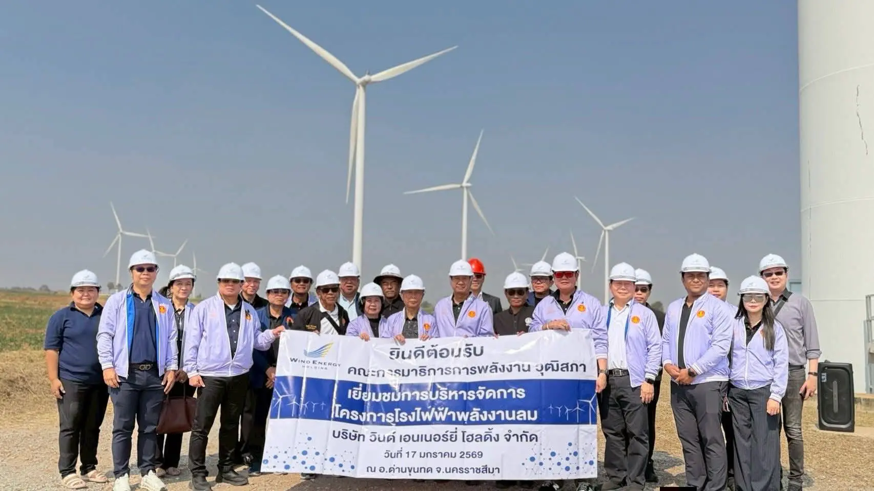 นายอัครฤทธิ์ วิริยาจาร ผู้อำนวยการฝ่ายปฏิบัติการ บริษัท วินด์ เอนเนอร์ยี่ โฮลดิ้ง จำกัด ให้การต้อนรับและบรรยายข้อมูลด้านการดำเนินงาน และการจัดการการผลิตไฟฟ้าจากพลังงานลม ให้แก่คณะกรรมาธิการการพลังงาน วุฒิสภา โดยมีนายพรเพิ่ม ทองศรี ประธานคณะกรรมาธิการ นำคณะกรรมาธิการฯ เข้าร่วมรับฟังระหว่างกิจกรรมเดินทางศึกษาดูงาน ณ จ.นครราชสีมา ที่ศูนย์ปฏิบัติงานควบคุมโรงไฟฟ้าของบริษัทฯ ที่ อ.ด่านขุนทด จ.นครราชสีมา เมื่อวันที่ 17 มกราคม 2569