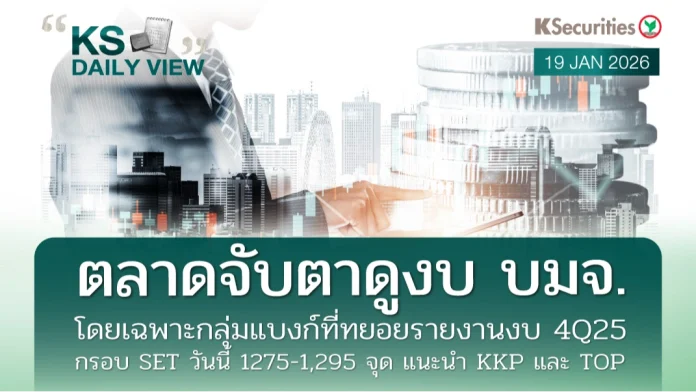 KS Daily View 20.01.2026 >>> ตลาดจับตาดูงบ บมจ. โดยเฉพาะกลุ่มแบงก์ที่ทยอยรายงานงบ 4Q25 กรอบ SET วันนี้ 1275-1,295 จุด แนะนำ KKP และ TOP