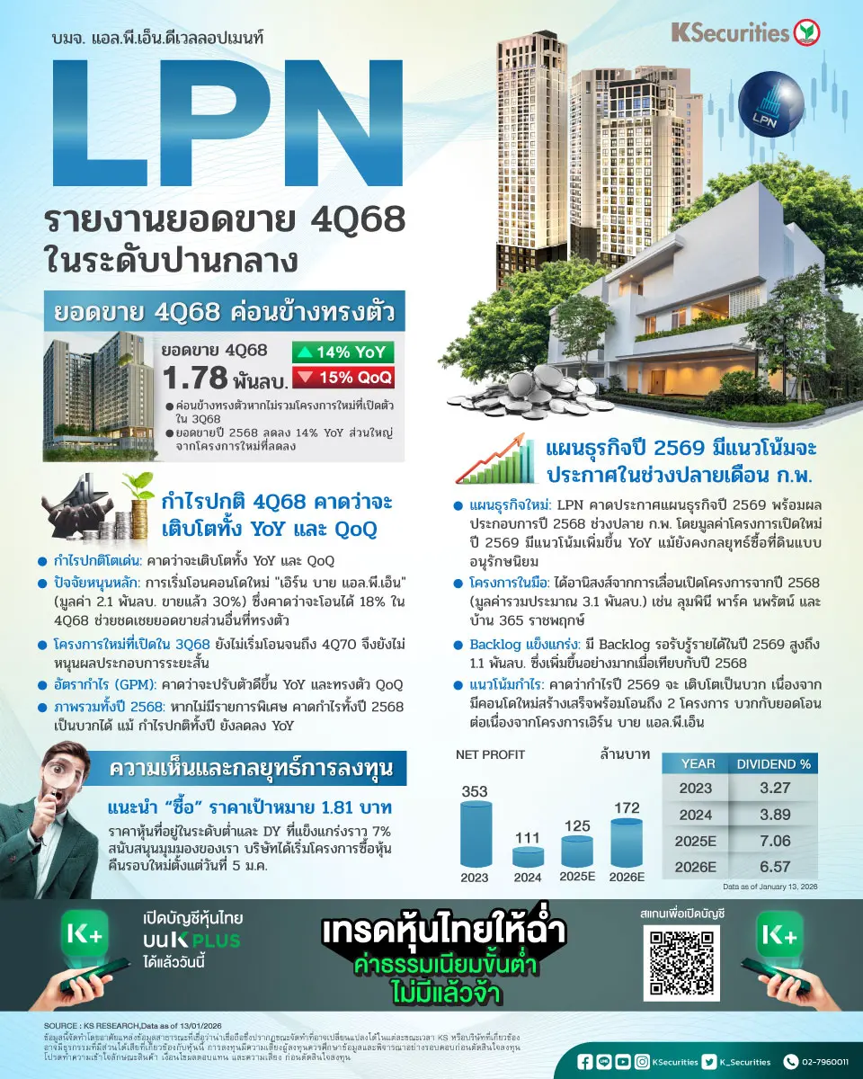 LPN รายงานยอดขาย 4Q68 ในระดับปานกลาง