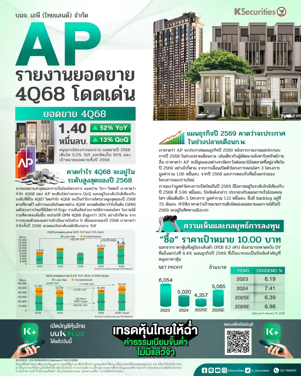 AP รายงานยอดขายไตรมาส 4/68 โดดเด่น