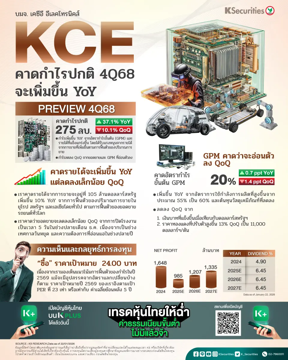 KCE คาดกำไรปกติ 4Q68 จะเพิ่มขึ้น YoY