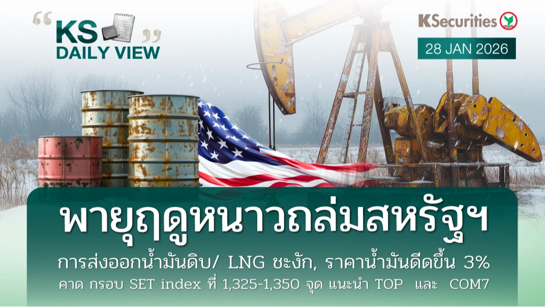 KS Daily View 28.01.2026 >>> พายุฤดูหนาวถล่มสหรัฐฯ การส่งออกน้ำมันดิบ/ LNG ชะงัก, ราคาน้ำมันดีดขึ้น 3% คาด กรอบ SET index ที่ 1,325-1,350 จุด แนะนำ TOP และ COM7