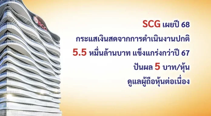 เอสซีจี เผยปี 68 กระแสเงินสดจากการดำเนินงานปกติ 5.5 หมื่นล้านบาท แข็งแกร่งกว่าปี 67 แม้เศรษฐกิจโลก-ไทย ท้าทายกว่าเดิม เคาะปันผล 5 บาท/หุ้น ดูแลผู้ถือหุ้นต่อเนื่อง