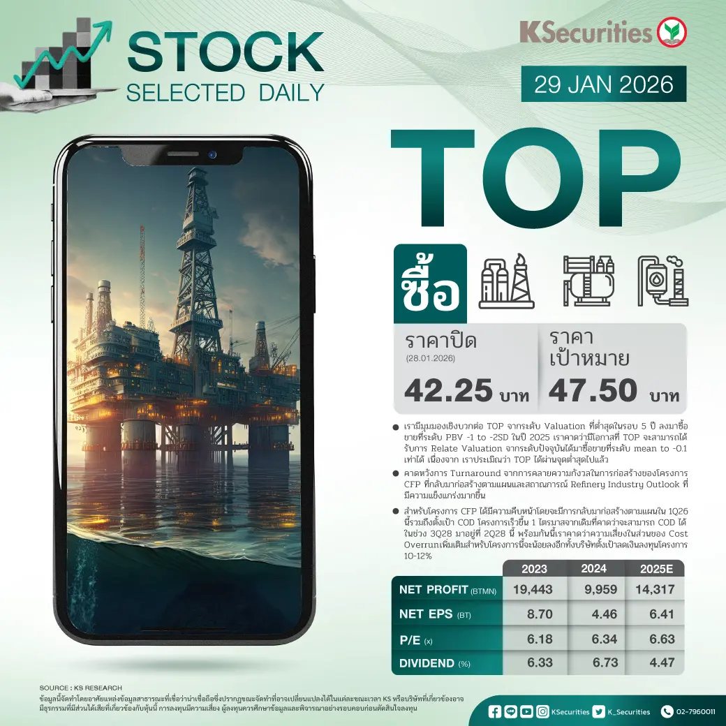 - เรามีมุมมองเชิงบวกต่อ TOP จากระดับ Valuation ที่ต่ำสุดในรอบ 5 ปี ลงมาซื้อขายที่ระดับ PBV -1 to -2SD ในปี 2025 เราคาดว่ามีโอกาสที่ TOP จะสามารถได้รับการ Relate Valuation จากระดับปัจจุบันได้มาซื้อขายที่ระดับ mean to -0.1 เท่าได้ เนื่องจาก เราประเมิณว่า TOP ได้ผ่านจุดต่ำสุดไปแล้ว
