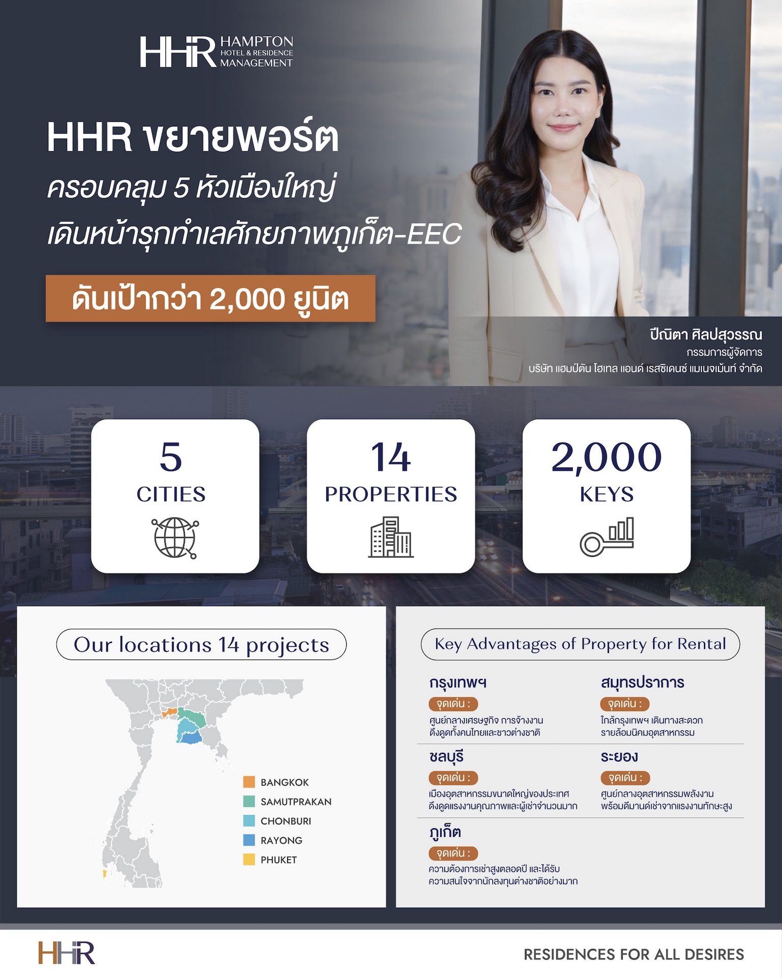 - ตอกย้ำการดำเนินงานของ HHR ที่มุ่งเน้นมาตรฐานการบริการระดับสากล ภายใต้บริการ HHR Services และมอบที่พักอาศัยให้ตอบโจทย์ความต้องการที่หลากหลายอย่างแท้จริง