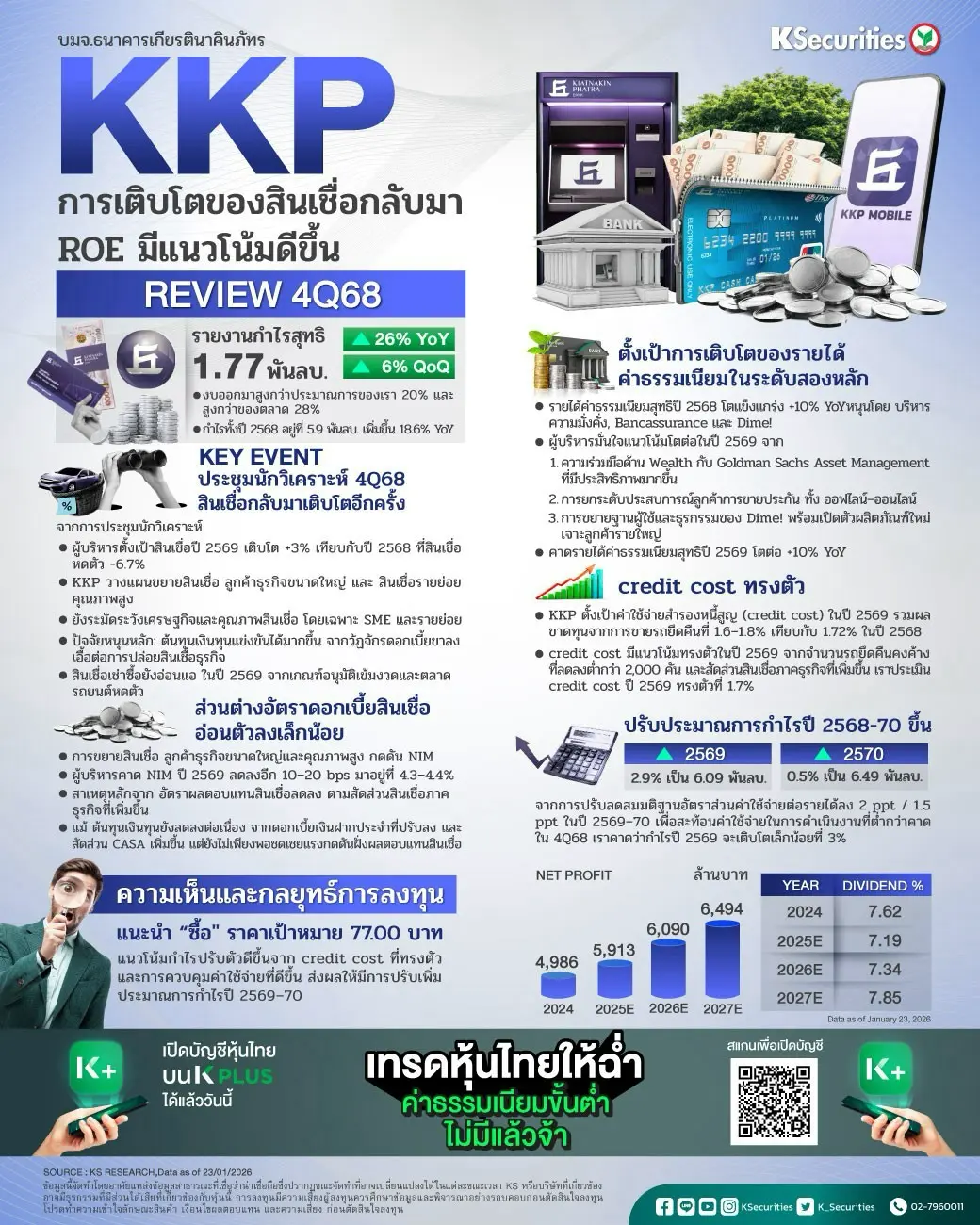 KKP การเติบโตของสินเชื่อกลับมา ROE มีแนวโน้มดีขึ้น