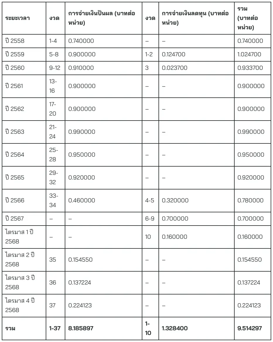 ประวัติการจ่ายเงินปันผลและเงินลดทุนกองทุน 3BBIF