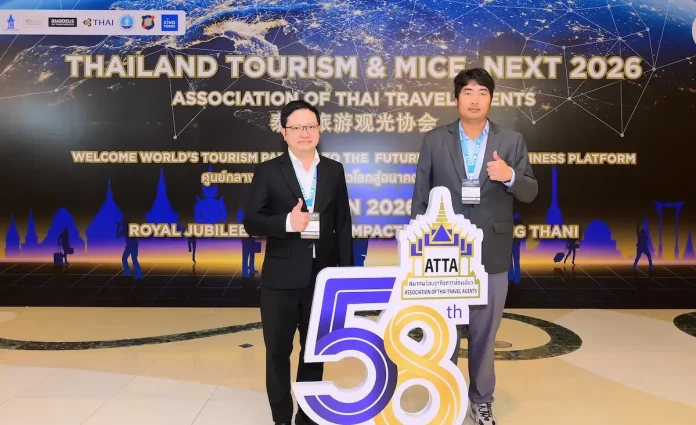 นายธัชพล ชลวัฒนสกุล (ซ้าย) ประธานเจ้าหน้าที่บริหาร พร้อมด้วย นายศุภกร พันธุกานนท์ (ขวา) ประธานเจ้าหน้าที่ฝ่ายปฏิบัติการ บริษัท เฮลท์ลีด จำกัด (มหาชน) (HL) นำผลิตภัณฑ์ “แบรนด์ Q” นวัตกรรมสมุนไพรไทย สเปรย์พ่นปาก-จมูก MOUTH SPRAY & NASAL SPRAY ร่วมจัดแสดงในงาน Thailand Tourism & MICE Next 2026 เวที International B2B Platform งานท่องเที่ยวระดับสากลของไทย จัดโดย สมาคมไทยธุรกิจการท่องเที่ยว (ATTA) เพื่อให้ผู้เข้าร่วมงานจากทั่วโลกสามารถเห็นทิศทาง แนวโน้ม และโอกาสของอุตสาหกรรมการท่องเที่ยวทั้งในมิติ Leisure และ MICE ในภูมิภาคสำคัญของโลกในแต่ละปี พร้อมเปิดพื้นที่ให้เกิดการเชื่อมโยงเครือข่าย ความร่วมมือ และการลงทุนอย่างต่อเนื่อง ซึ่งผลิตภัณฑ์ของ HL โดยได้รับความสนใจจากผู้ร่วมงานเป็นจำนวนมาก และงานดังกล่าวจัดขึ้น ณ ห้อง Royal Jubilee Ballroom ศูนย์แสดงสินค้าและการประชุมอิมแพ็ค เมืองทองธานี เมื่อเร็ว ๆ นี้