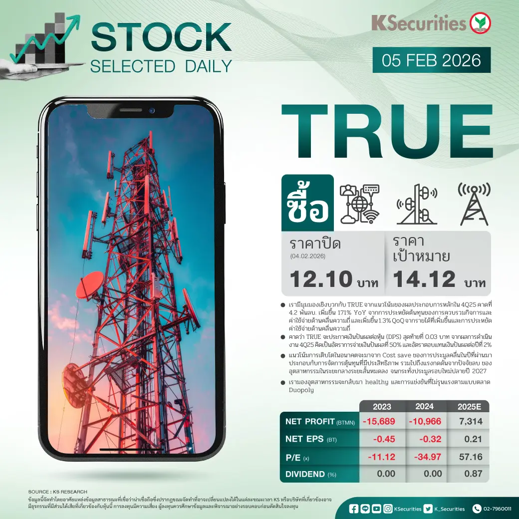 TRUE: คาดกำไร 4Q25 ที่ 4.2 พันลบ. เพิ่มขึ้น 171% YoY