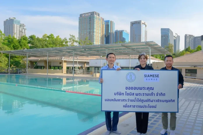 คุณมณเฑียร ยิ่งดำนุ่น กรรมการ บริษัท ไซมิส พระรามเก้า จำกัด บริษัทในเครือบริษัท ไซมิส แอสเสท จำกัด (มหาชน) หรือ SA เป็นผู้แทนส่งมอบงานก่อสร้างหลังคาบังแดดบริเวณสระว่ายน้ำให้แก่ ศูนย์กีฬาวชิรเบญจทัศ หรือ ศูนย์กีฬาในสวนรถไฟ โดยมีนางสาวพรรณี อังคณานิจ ผู้อำนวยการกองการกีฬา สำนักวัฒนธรรม กีฬาและการท่องเที่ยว กรุงเทพมหานคร เป็นผู้รับมอบ ทั้งนี้บริษัทฯ เล็งเห็นถึงความสำคัญของกีฬาว่ายน้ำที่มีต่อเยาวชน ทั้งในด้านการเสริมสร้างทักษะชีวิต สุขภาพร่างกาย และความปลอดภัยในชีวิตประจำวัน โดยสระว่ายน้ำศูนย์กีฬาวชิรเบญจทัศ นับเป็นหนึ่งในแหล่งการเรียนรู้ในโครงการ “เล่นน้ำได้ ว่ายน้ำเป็น” ซึ่งเป็นนโยบายของผู้บริหารกรุงเทพมหานคร และเป็นพื้นที่ออกกำลังกายสำหรับประชาชนทั่วไป จึงได้ดำเนินการออกแบบ ก่อสร้าง และส่งมอบหลังคาบังแดดบริเวณริมสระว่ายน้ำ เพื่อเพิ่มความสะดวกสบายและความปลอดภัยแก่ผู้ใช้บริการ