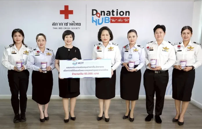 นางแววฤทัย ศุษิลวรณ์ ผู้อำนวยการสำนักกรรมการผู้อำนวยการใหญ่ บริษัท ท่าอากาศยานไทย จํากัด (มหาชน) (AOT) และนางสุภางค์ มาลานิยม ผู้อำนวยการฝ่ายกิจการเพื่อสังคม พร้อมด้วยพนักงาน AOT เข้าร่วมมอบงบประมาณสนับสนุนปากกาที่ระลึกกาชาด เพื่อหารายได้โดยเสด็จพระราชกุศลบำรุงสภากาชาดไทย จำนวน 60,000.- บาท ให้แก่สภากาชาดไทย โดย นางจันทร์ประภา วิชิตชลชัย รองผู้อำนวยการสำนักงานจัดหารายได้สภากาชาดไทย เป็นผู้รับมอบ เมื่อวันที่ 2 กุมภาพันธ์ 2569 ณ สำนักงานจัดหารายได้ สภากาชาดไทย