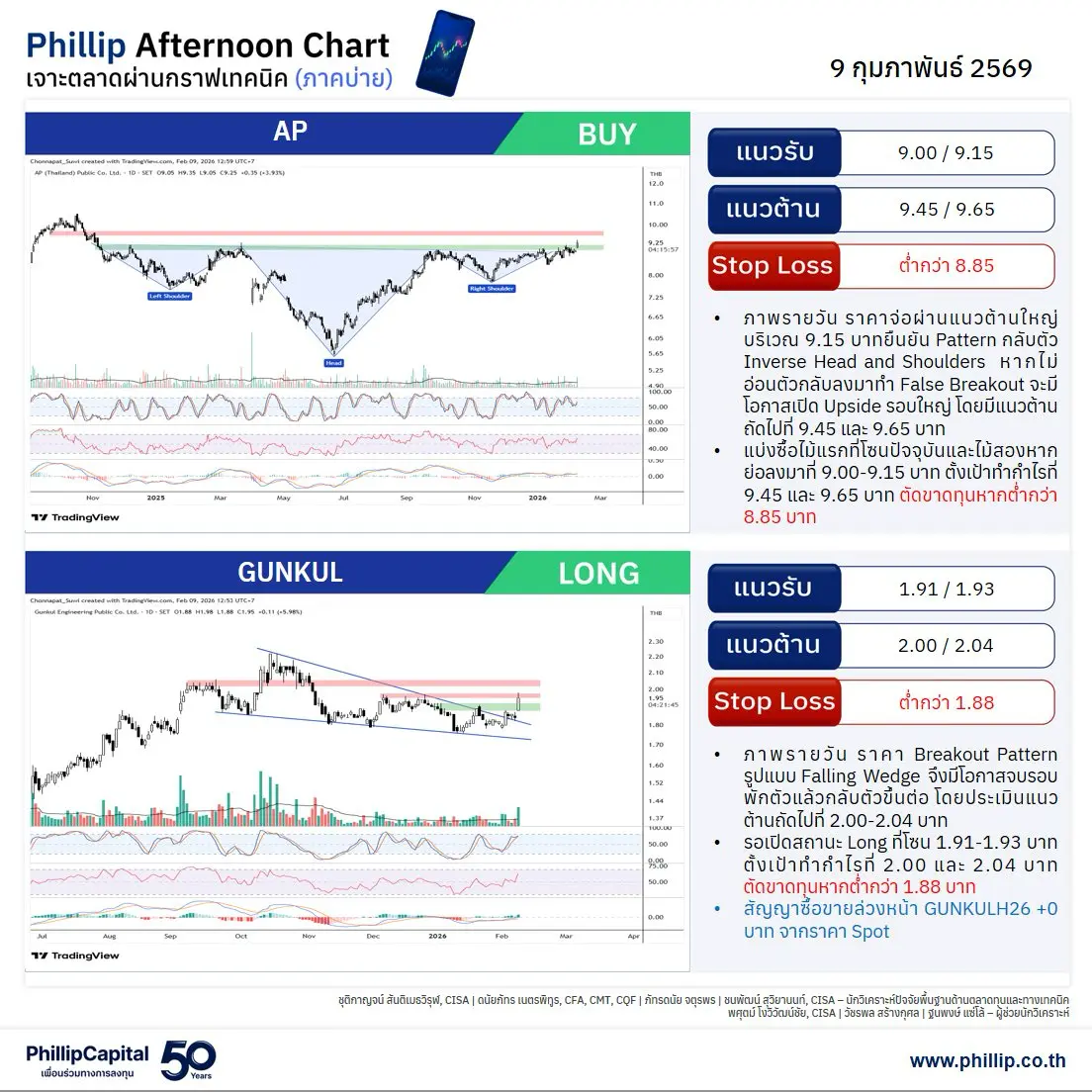 หุ้นแนะนำบ่ายนี้ AP, GUNKUL (Long)
