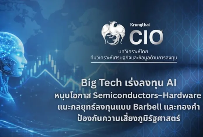Krungthai CIO ชี้ Big Tech เร่งลงทุน AI หนุนโอกาส Semiconductors–Hardware ขณะ “Monetization” เป็นตัวชี้ขาด: แนะกลยุทธ์ลงทุนแบบ Barbell รองรับกระแส Rotation ตลาด และลงทุนในทองคำป้องกันความเสี่ยงภูมิรัฐศาสตร์