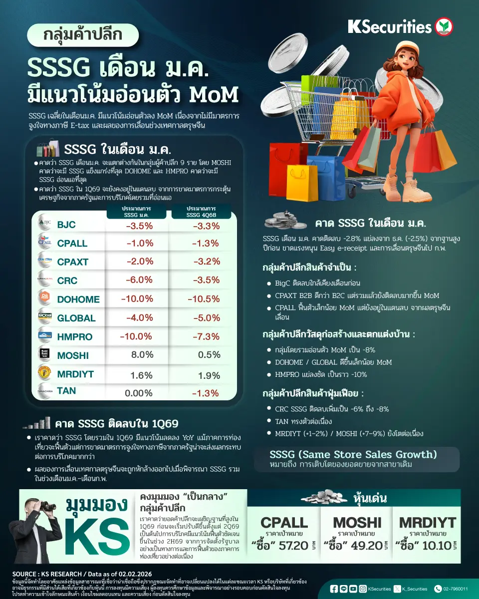 กลุ่มค้าปลีก SSSG เดือนม.ค. มีแนวโน้มอ่อนตัว MoM