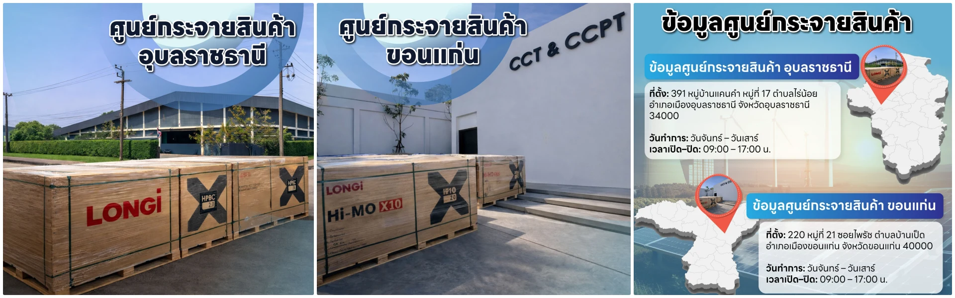ทั้งสองศูนย์กระจายสินค้ามีสินค้าพร้อมจำหน่ายทันที โดยเฉพาะแผงโซลาร์เซลล์โมเดลหลัก LONGi Hi-Mo X10 Bifacial ขนาด 645W และโมเดลอื่นๆ ตามความต้องการของตลาด ซึ่งเป็นแผงโซลาร์เซลล์ประสิทธิภาพสูงที่ได้รับความนิยมในโครงการเชิงพาณิชย์และอุตสาหกรรม ช่วยเพิ่มผลผลิตพลังงานและตอบโจทย์การลงทุนระยะยาว