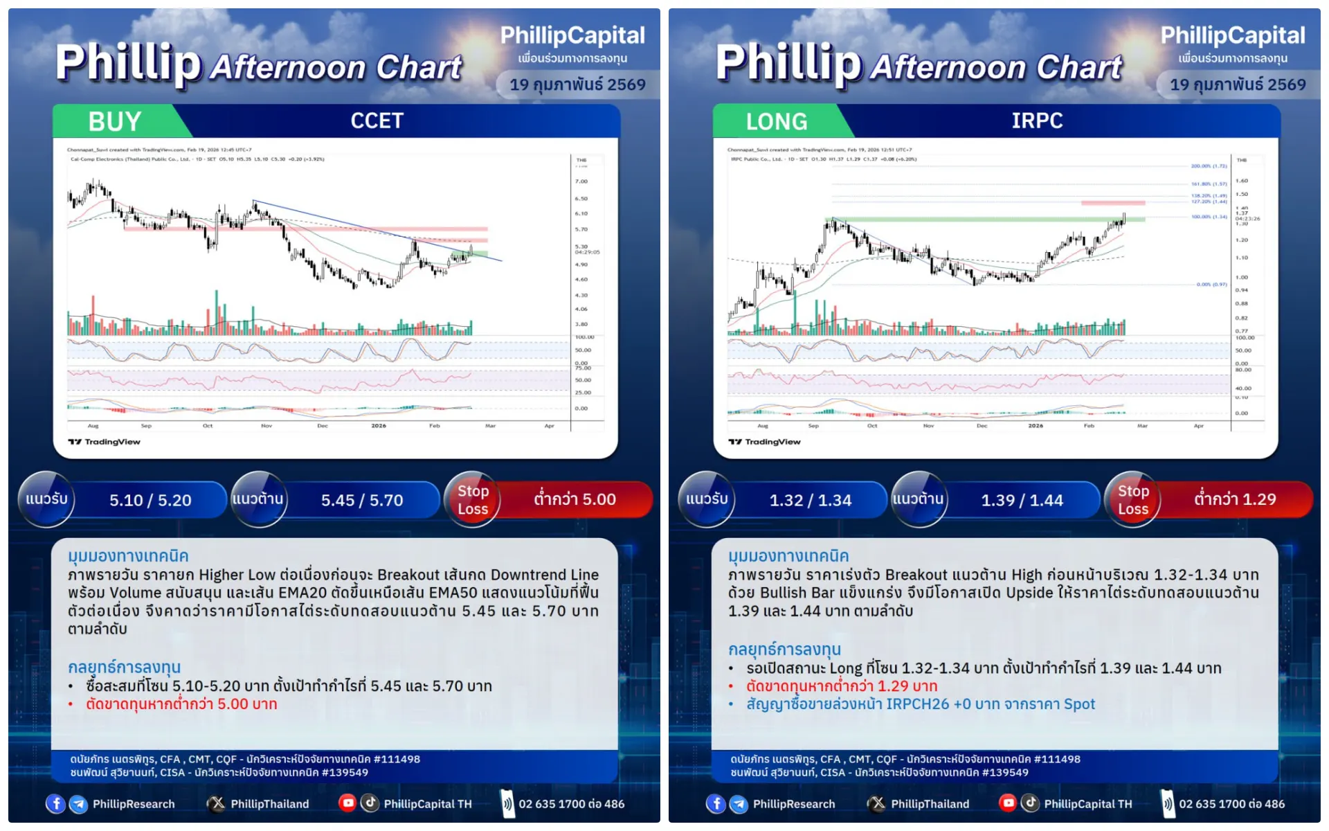 หุ้นแนะนำบ่ายนี้ CCET, IRPC (Long)