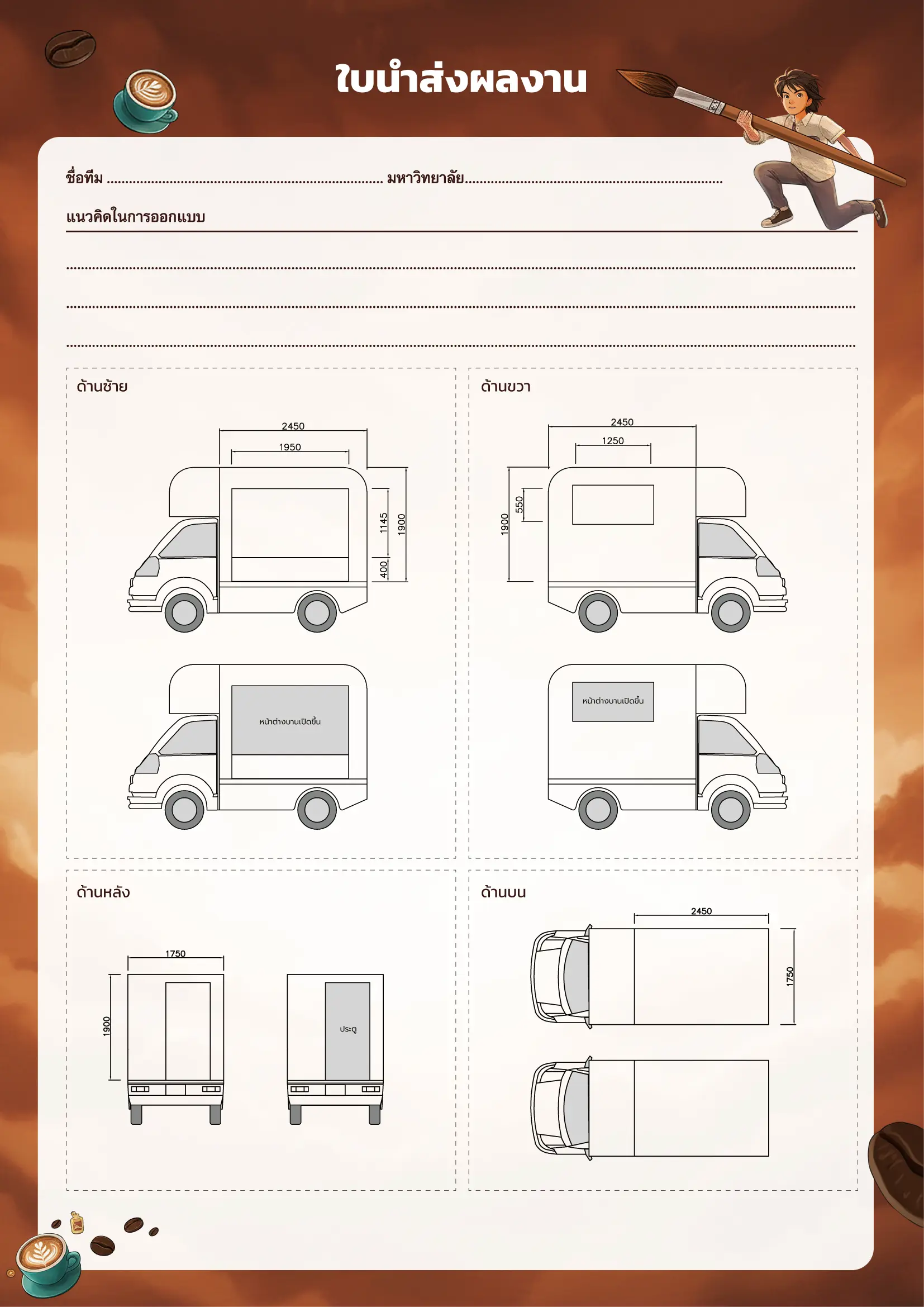 • ส่งผลงานออกแบบในรูปแบบไฟล์ดิจิทัล (Adobe Photoshop, Illustrator ฯลฯ) ความละเอียด 300dpi