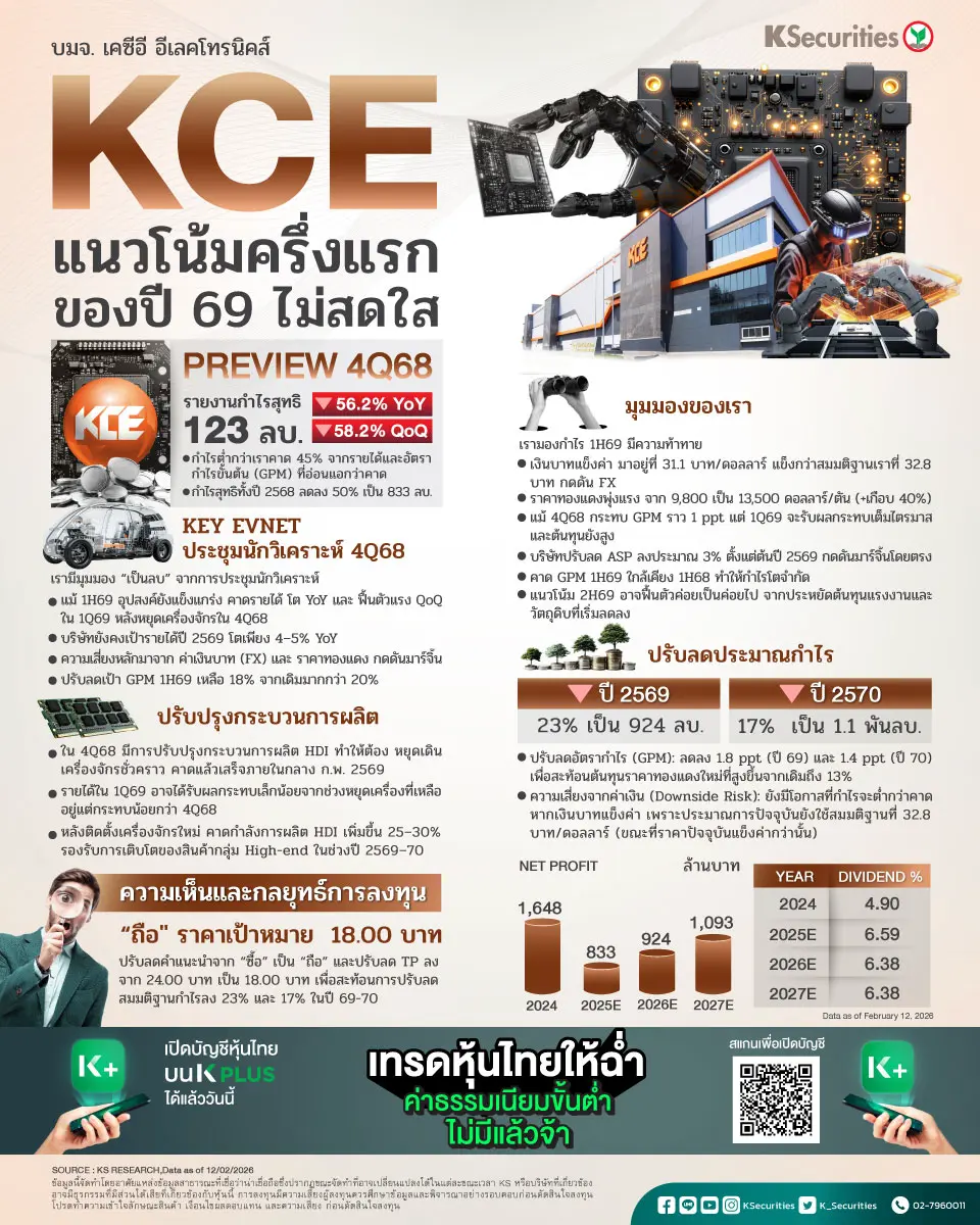 KCE แนวโน้มครึ่งแรกของปี 69 ไม่สดใส