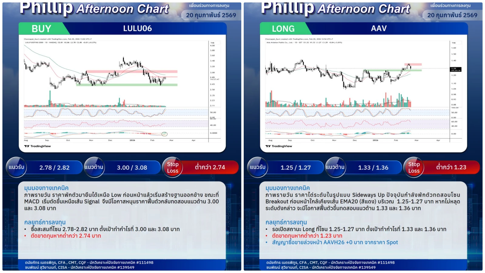 หุ้นแนะนำบ่ายนี้ LULU06, AAV (Long)