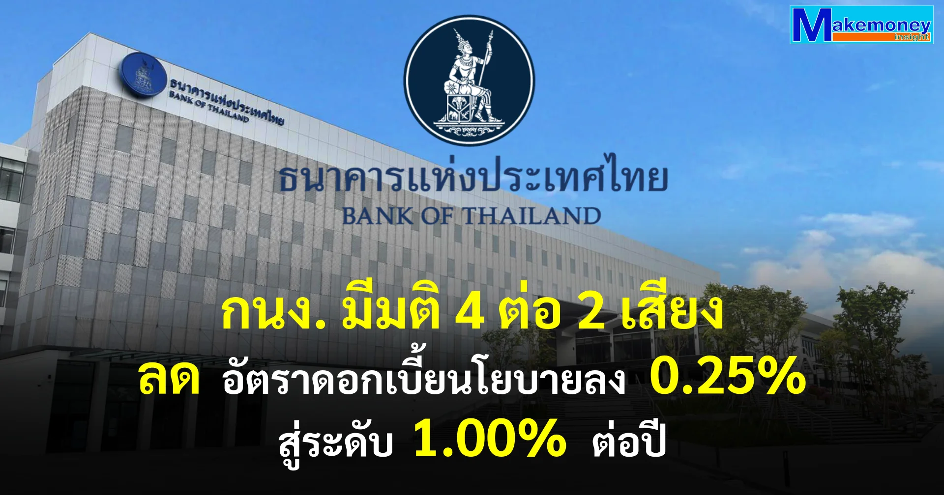กรรมการส่วนใหญ่เห็นควรให้ลดอัตราดอกเบี้ยนโยบายร้อยละ 0.25 จากร้อยละ 1.25 เป็น ร้อยละ 1.00 เพื่อให้ภาวะการเงินสนับสนุนการฟื้นตัวของเศรษฐกิจและยังช่วยบรรเทาภาระหนี้ให้กับ SMEs และครัวเรือนเพิ่มเติม และเพื่อยึดเหนี่ยวการคาดการณ์เงินเฟ้อระยะปานกลางที่มีความเสี่ยงเพิ่มขึ้น ขณะที่กรรมการ 2 ท่านเห็นควรให้คงอัตราดอกเบี้ยนโยบายที่ร้อยละ 1.25 โดยเห็นว่านโยบายการเงินปัจจุบันยังสอดคล้องกับแนวโน้มเศรษฐกิจและเงินเฟ้อ และการลดดอกเบี้ยที่ผ่านมาอยู่ระหว่างการส่งผ่านไปยังเศรษฐกิจ ทั้งนี้ คณะกรรมการฯ ให้ความสำคัญกับเสถียรภาพระบบการเงินในระยะปานกลาง รวมทั้งขีดความสามารถของนโยบายการเงินที่มีอยู่จำกัดภายใต้บริบทที่มีความไม่แน่นอนสูง และเห็นว่าอัตราดอกเบี้ยที่ปรับลดลงสะท้อนถึงนโยบายการเงินที่ผ่อนคลายเพียงพอและสอดคล้องกับการประเมินแนวโน้มเศรษฐกิจในระยะข้างหน้า โดยเศรษฐกิจที่ขยายตัวต่ำจากปัจจัยเชิงโครงสร้างไม่สามารถแก้ไขได้ด้วยนโยบายการเงินเพียงอย่างเดียว แต่จำเป็นต้องผสมผสานนโยบายหลายด้านเพื่อเพิ่มผลิตภาพการผลิตและขีดความสามารถในการแข่งขันของภาคธุรกิจ รวมทั้งมาตรการทางการเงินเฉพาะจุดอื่น