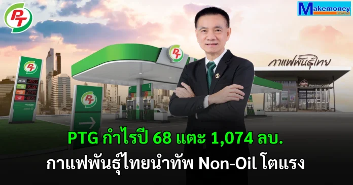 PTG เสิร์ฟงบปี 68 กำไรแตะ 1,074 ลบ. – EBITDA โต 11.3% กาแฟพันธุ์ไทยนำทัพ Non-Oil โตเด่น – มาร์เก็ตแชร์ค้าปลีกน้ำมันพุ่ง 22.0% บอร์ดแจกปันผล 0.35 บ./หุ้น กำหนดจ่าย 15 พ.ค.นี้