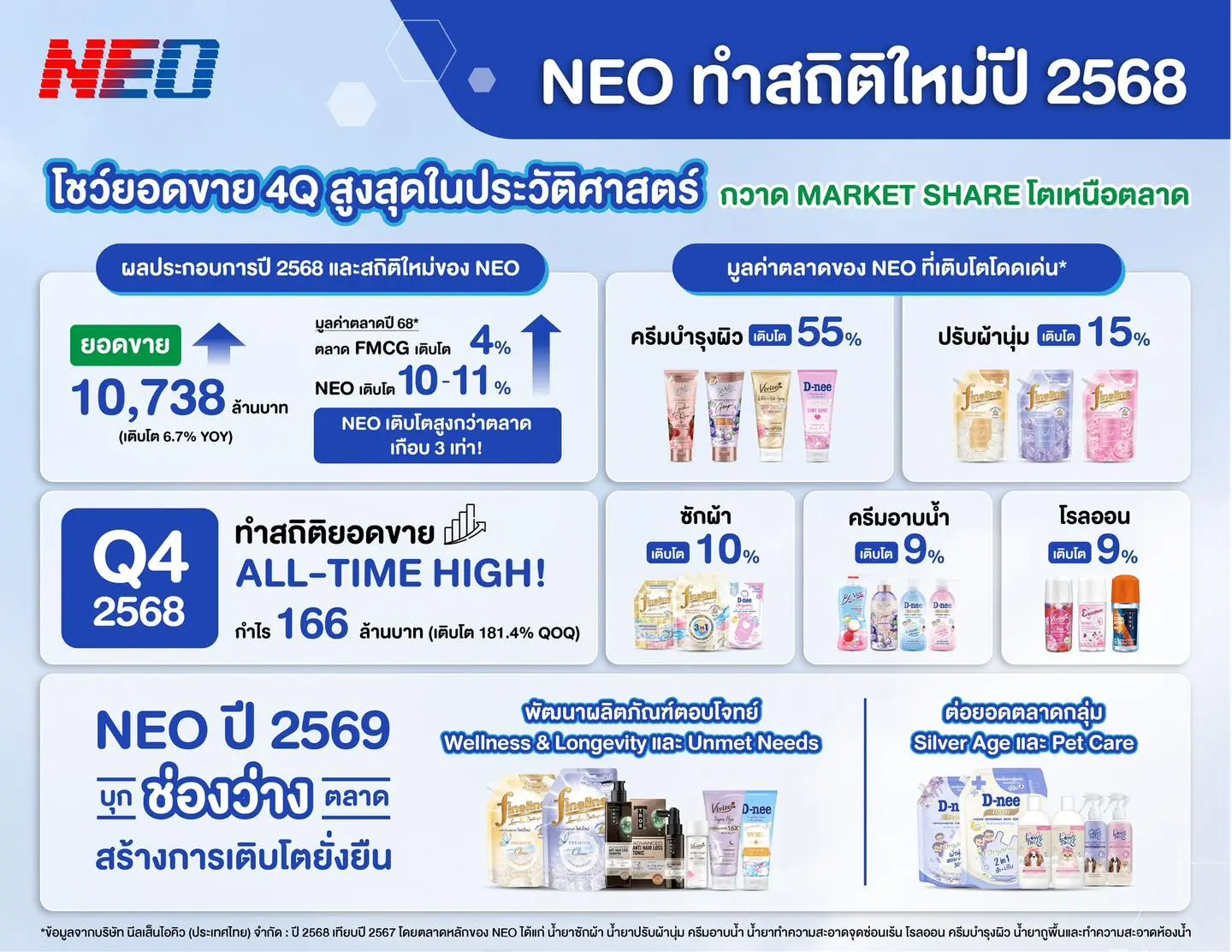 NEO สร้างสถิติใหม่ โชว์ยอดขาย 4Q สูงสุดในประวัติศาสตร์ กวาด Market Share โตเหนือตลาด เตรียมปันผล 1.35 บาท