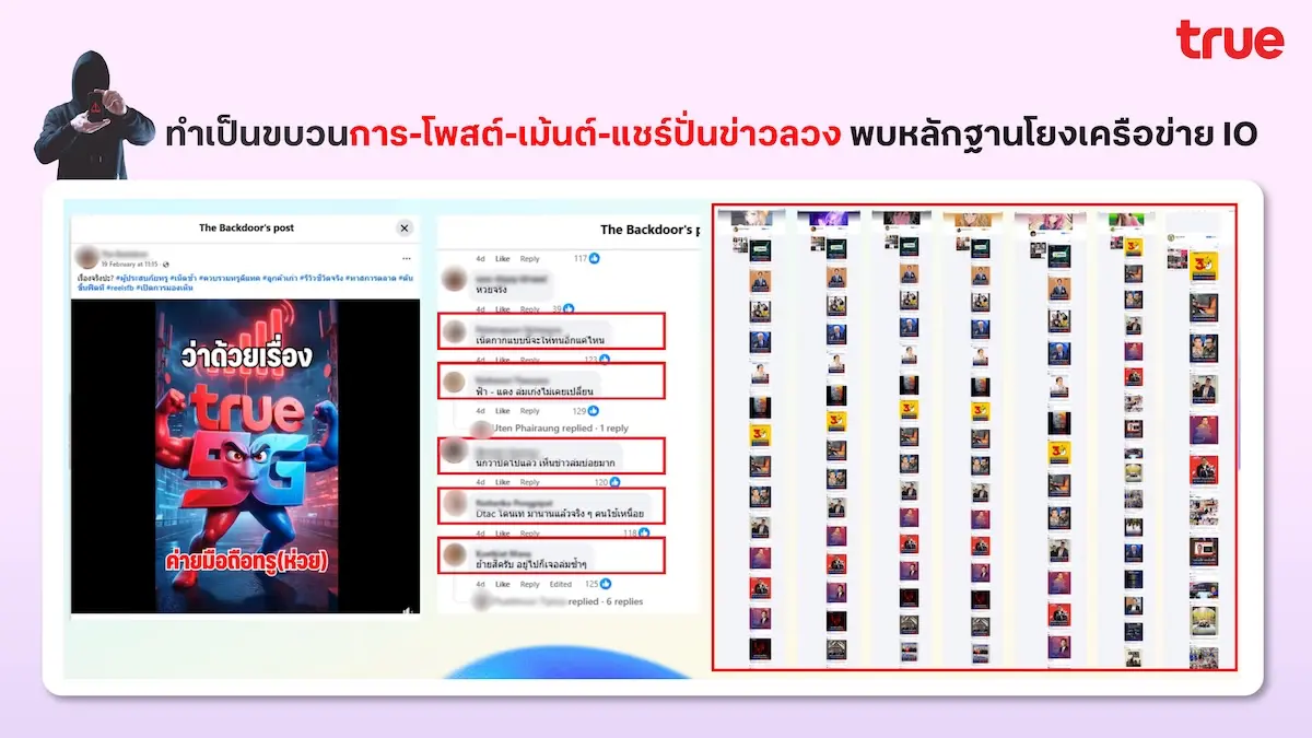 ทรูเอาจริง ล่าตัวมือป่วนบนโซเชียล! เข้าแจ้งความตำรวจไซเบอร์ (บช.สอท.1) ดำเนินคดีกลุ่มบัญชีโซเชียลสร้างเฟคนิวส์ ใช้ AI ผลิตภาพบิดเบือน ให้ข้อมูลเท็จสร้างความเข้าใจผิดกระทบต่อความเชื่อมั่นของสาธารณะ พร้อมส่งมอบหลักฐานเร่งขยายผลเอาผิดผู้กระทำผิดถึงที่สุด