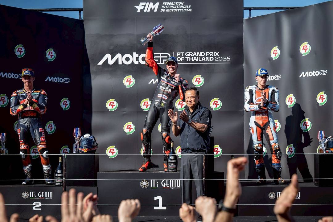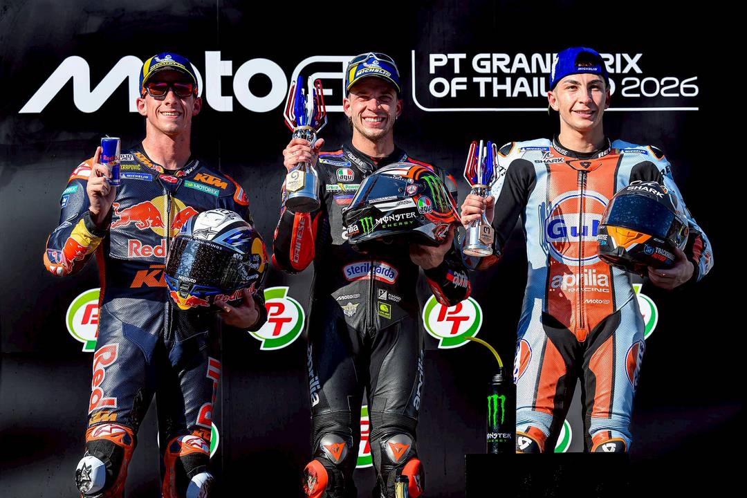 ศึกมอเตอร์สปอร์ตสองล้อเบอร์หนึ่งของโลก “โมโตจีพี” ดวลความเร็วสนามแรก ที่ประเทศไทย ภายใต้ชื่อรายการ “พีที กรังด์ปรีซ์ ออฟ ไทยแลนด์” กระหึ่มโลก ด้วยเกมสุดเร้าใจ มาร์โก เบซเซ็คคี ดาวบิดอิตาเลียนจาก อพริเลีย เรซซิ่ง แก้ตัวสำเร็จนำม้วนเดียวจบผงาดคว้าชัยประเดิมฤดูกาลใหม่เหนือ เปโดร อคอสต้า นักบิดสแปนิชจาก เคทีเอ็ม ขณะ มาร์ค มาร์เกซ แชมป์โลกคนปัจจุบันจาก ดูคาติ ดวงแตกยางระเบิดไม่จบเรซ โดยโมโตจีพี สนามประเทศไทยในครั้งนี้ เป็นปีที่ ทำลายสถิติ (Break Records ) ผู้ชมสูงสุดกว่าทุกปี จำนวนกว่า 228,228 คน