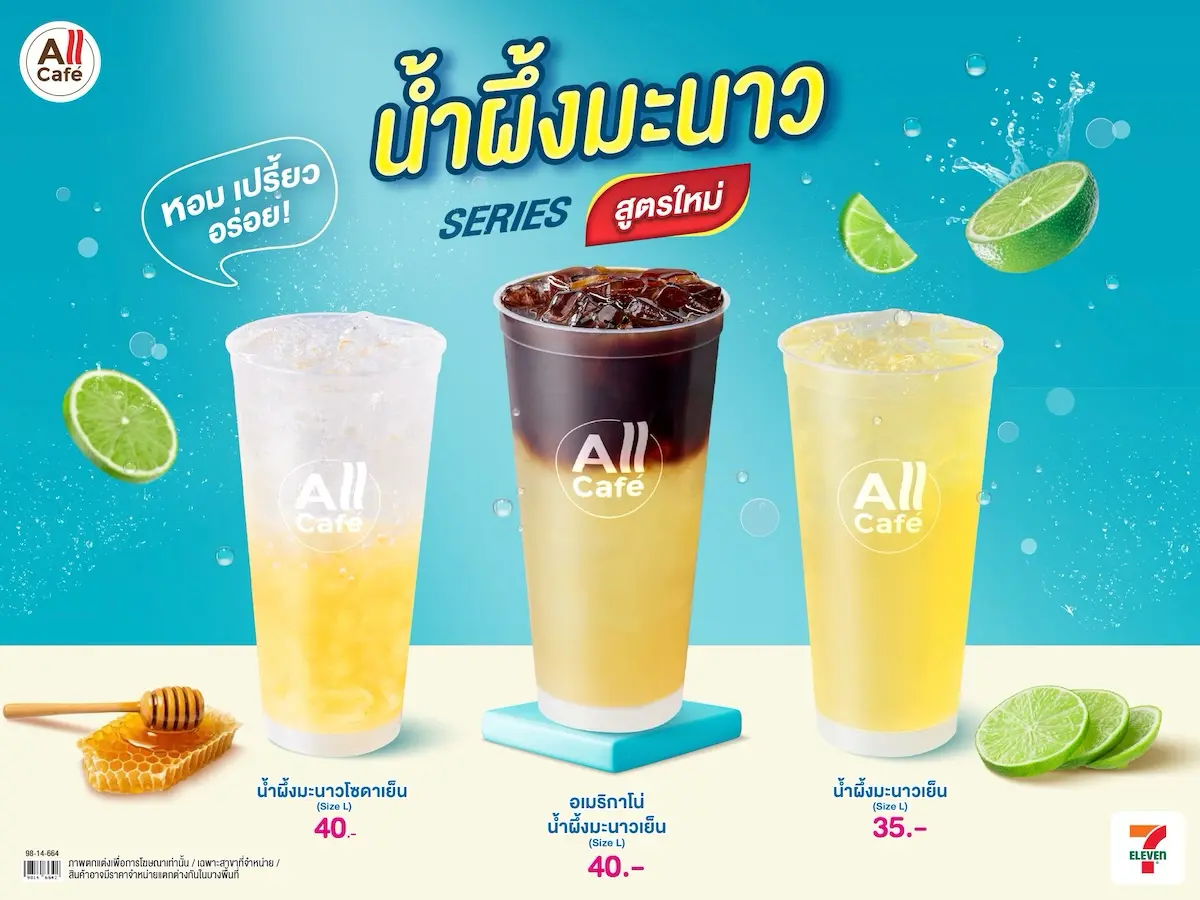 สำหรับการเปิดตัวครั้งนี้ มาพร้อม 3 เมนู ได้แก่ อเมริกาโน่น้ำผึ้งมะนาวเย็น, น้ำผึ้งมะนาวโซดาเย็น และน้ำผึ้งมะนาวเย็น โดยจะเริ่มวางจำหน่ายตั้งแต่วันที่ 5 มีนาคม 2569 นี้ ที่ร้าน 7-Eleven สาขาที่มีมุม All Café เฉพาะสาขาที่ร่วมรายการทั่วประเทศ