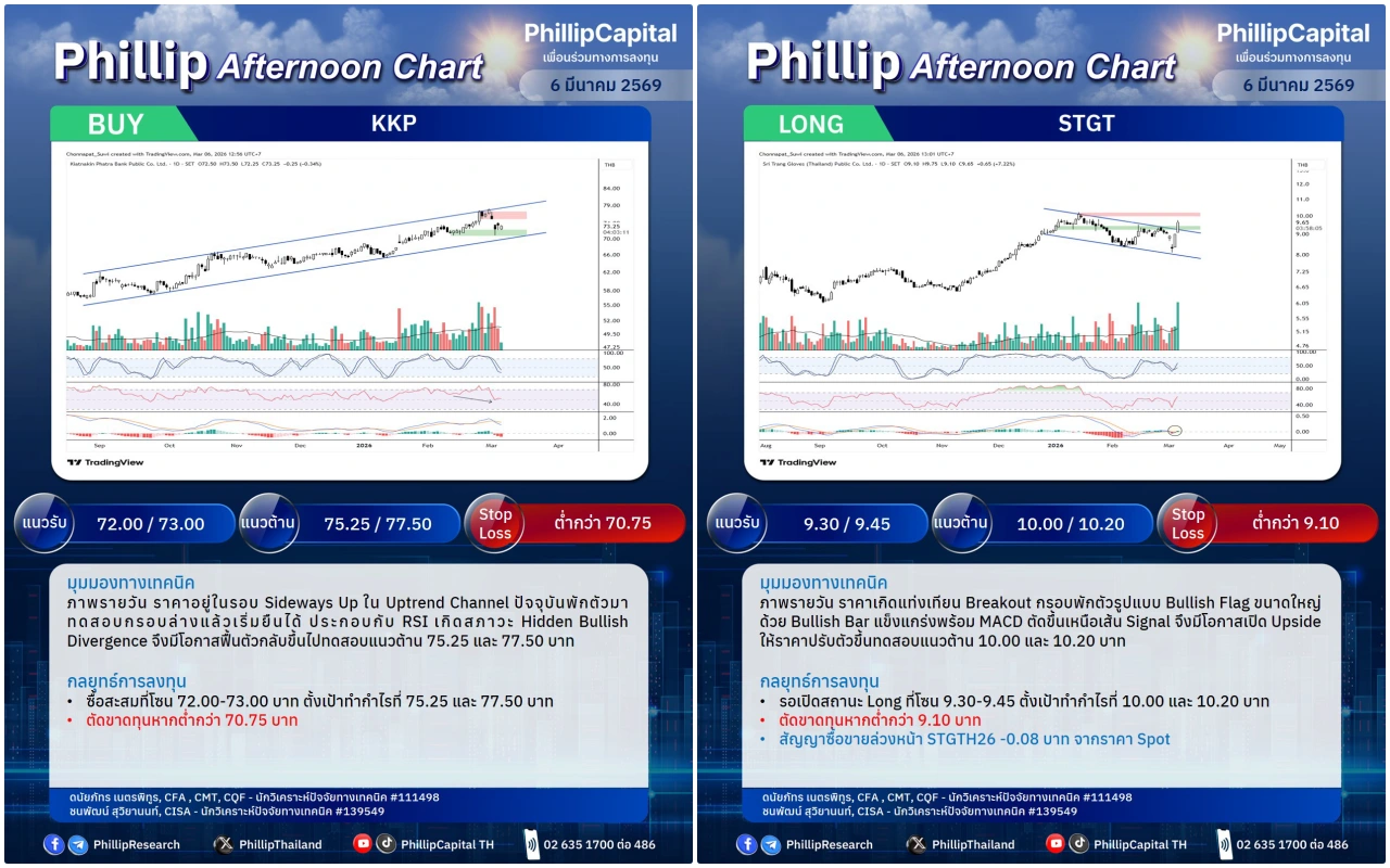 หุ้นแนะนำบ่ายนี้ KKP, STGT (Long)