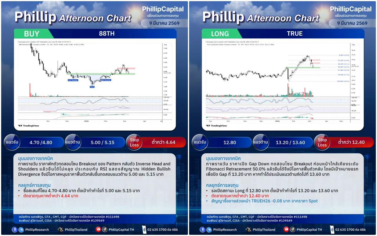 หุ้นแนะนำบ่ายนี้ 88TH, TRUE (Long)