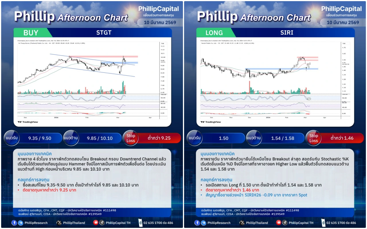 หุ้นแนะนำบ่ายนี้ STGT, SIRI (Long)