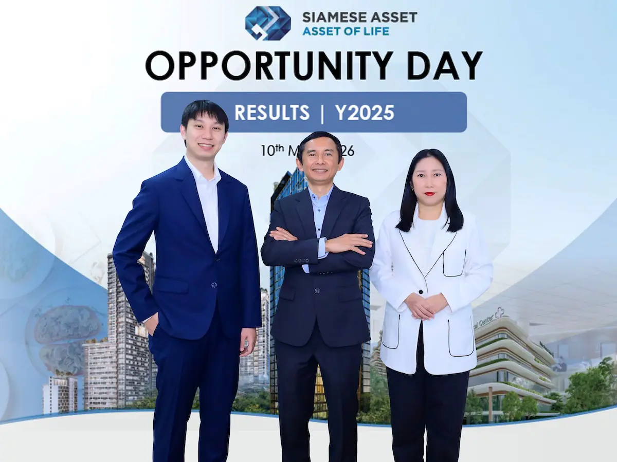 คุณมณเฑียร ยิ่งดำนุ่น (กลาง) ประธานเจ้าหน้าที่ฝ่ายปฏิบัติการร่วม, คุณสุทธินนท์ มั่นคง (ซ้าย) รักษาการประธานเจ้าหน้าที่สายงานการเงินและบัญชี และคุณสว่างจิต ศรีนิลทา (ขวา) Vice President Marketing บริษัท ไซมิส แอสเสท จำกัด (มหาชน) (SA) ร่วมนำเสนอข้อมูลสรุปผลการดำเนินงานงวดประจำปี 2568 ในงานบริษัทจดทะเบียนพบผู้ลงทุน (Opportunity Day) โดยบริษัทฯ มีรายได้รวม 2,718.25 ล้านบาท และมีกำไรสุทธิ 116.49 ล้านบาท ปัจจัยสนับสนุนจากการรับรู้รายได้โครงการอสังหาริมทรัพย์ต่อเนื่อง ทั้งยังมีรายได้จากธุรกิจโรงแรมเพิ่มขึ้นโดดเด่น 49.88% จากกระแสตอบรับของนักท่องเที่ยวต่างชาติที่เข้าพักโรงแรม Cassia Rama 9 Bangkok ขณะที่โครงการ Silver Age ซึ่งเป็นโครงการที่ให้บริการเวชศาสตร์ฟื้นฟูผู้สูงอายุกับศูนย์แพทย์ศรีพัฒน์ คาดว่าจะสามารถเปิด Presale ได้ในช่วงไตรมาส 4/2569 โดยกิจกรรมดังกล่าวจัดขึ้น ณ สำนักงานใหญ่ของบริษัทฯ เมื่อเร็วๆ นี้